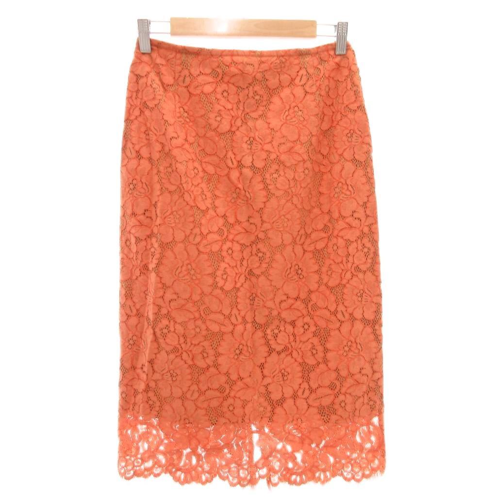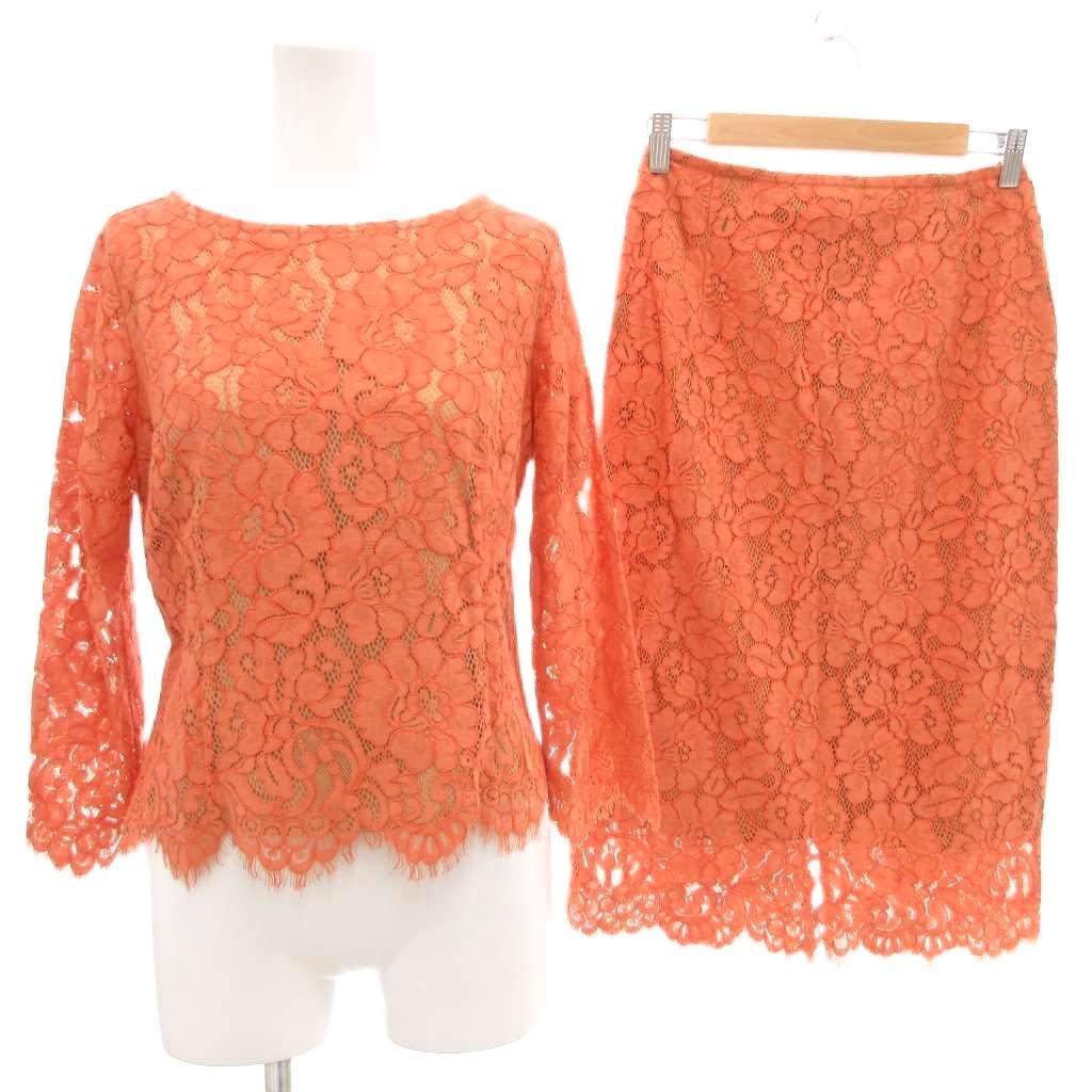 ナノユニバース nano universe Aperi 美品 セットアップ ブラウス シャツ 36 S スカート 38 M レース オレンジ /AE レディース