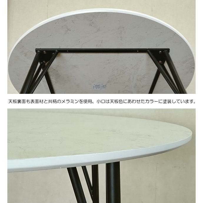 | 【商品名】 | 2人~4人掛け用大理石柄メラミン化粧板直径105cm円型天板ダイニングテーブル | |