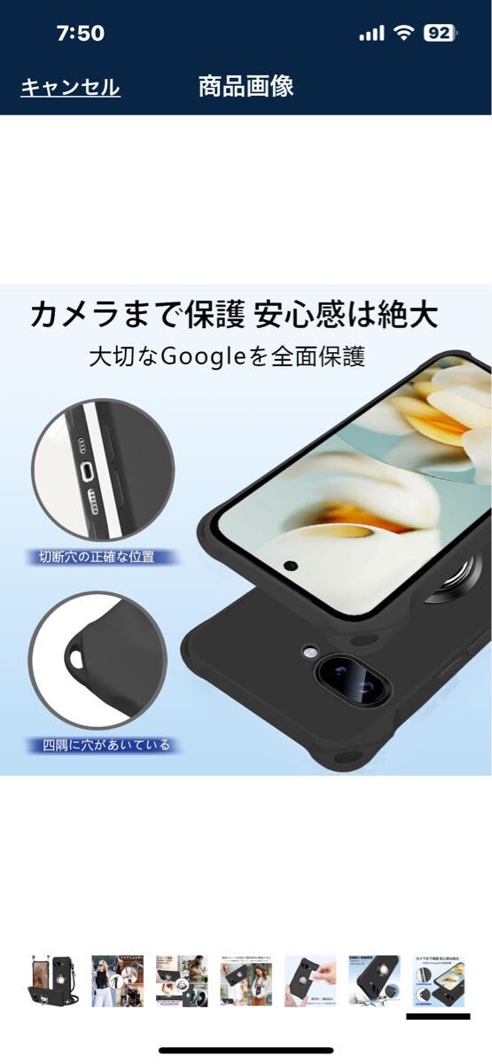 e591 Google Pixel 9a ケース ネックリング付き ショルダー 耐衝撃 ストラップ付 多機能 360°全面保護 落下防止 肩掛け(ブラック)