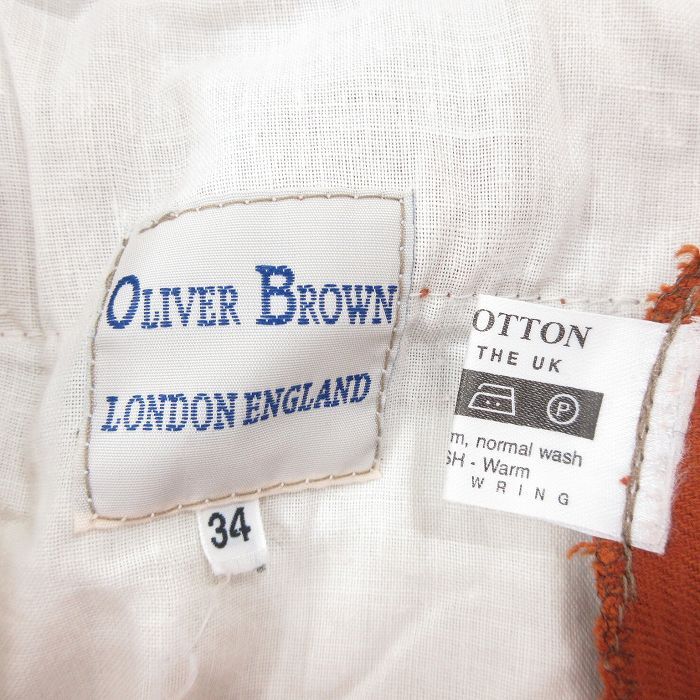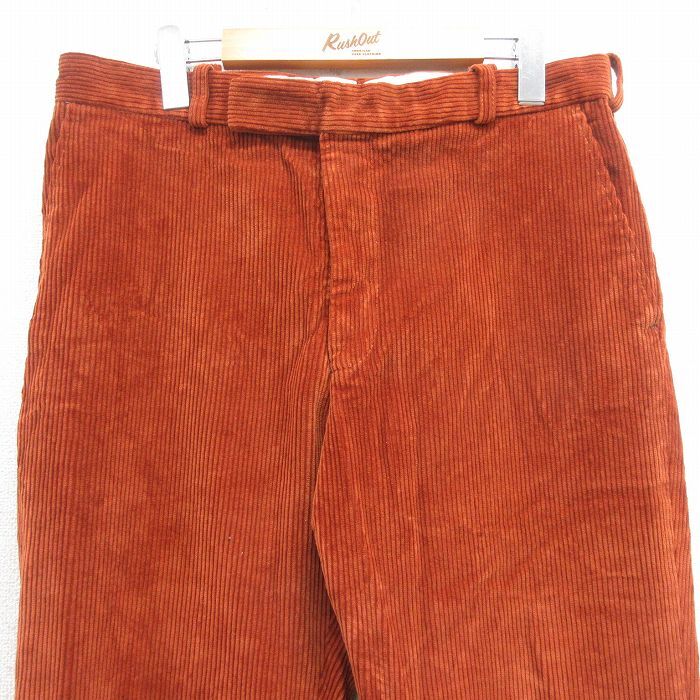 【商品名】 W34★古着 スラックス コーデュロイ パンツ メンズ 90年代 90s 太畝 コットン イギリス製 茶