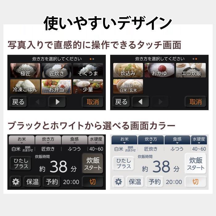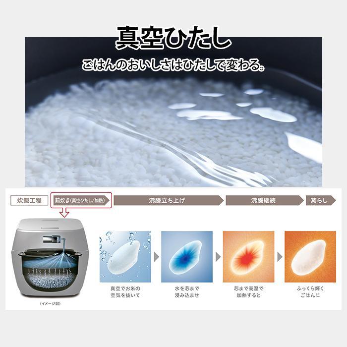 品名 東芝RC-10ZWW(W) もちもち粒立ったごはんを炊き上げる、最高級モデルの真空圧力IHジャー炊飯器(5.5合)。 独自の熱対流と圧力コントロールで加熱を促進。「真空ひたし」により、内釜の中を真空にし、圧力差でお米の芯までたっぷり吸水させる。 68銘柄から好みの銘柄が選択可能で、さらに料理や好みに合わせて食感も選べる。 |
