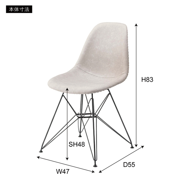 サイズ:W47×D55×H83×SH48 材質・素材:スチール(粉体塗装) ソフトレザー 組立式 耐荷重:80kg※こちらの商品は、北海道、沖縄県及び離島へお届けできません。※イメージ画像に含まれる備品等は商品に含まれません。(例:販売商品のテーブル等に合わせたチェアや敷物、カップやディシュ等)