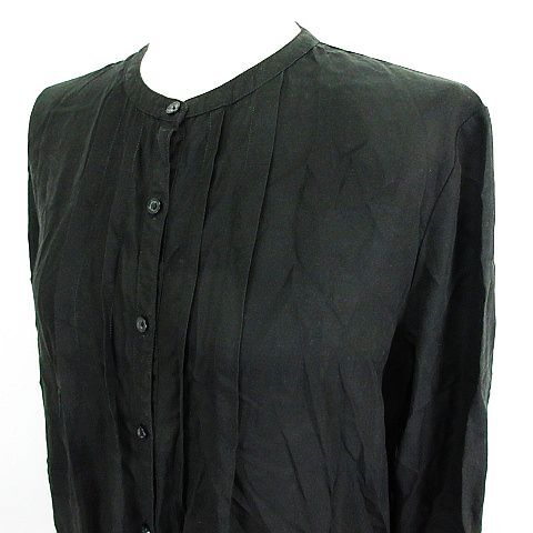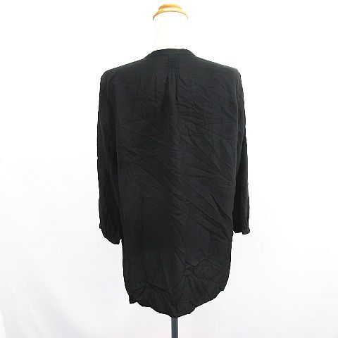 無印良品 良品計画 シャツ ブラウス 七分袖 バンドカラー プリーツ L ブラック ※EKM レディース