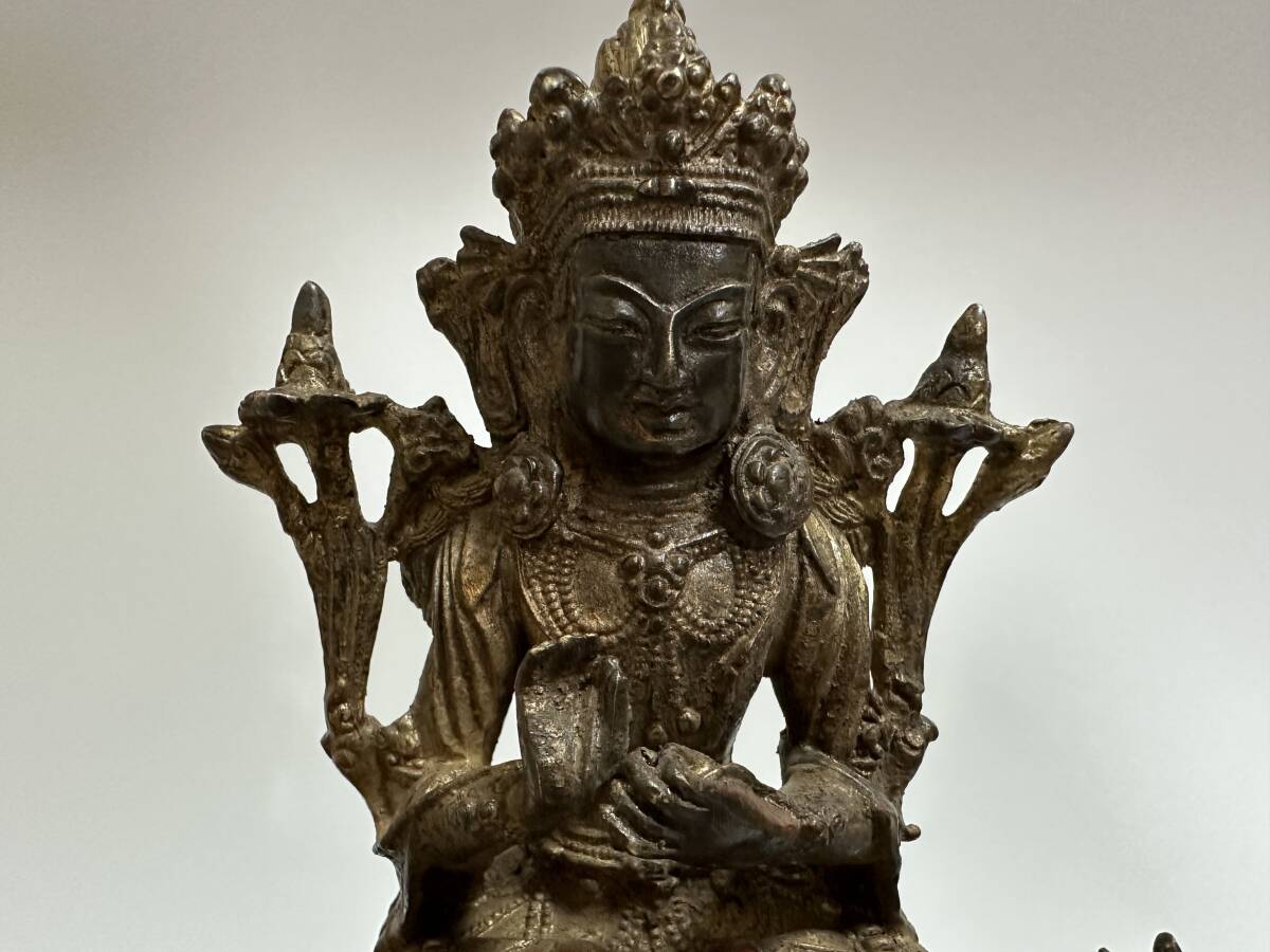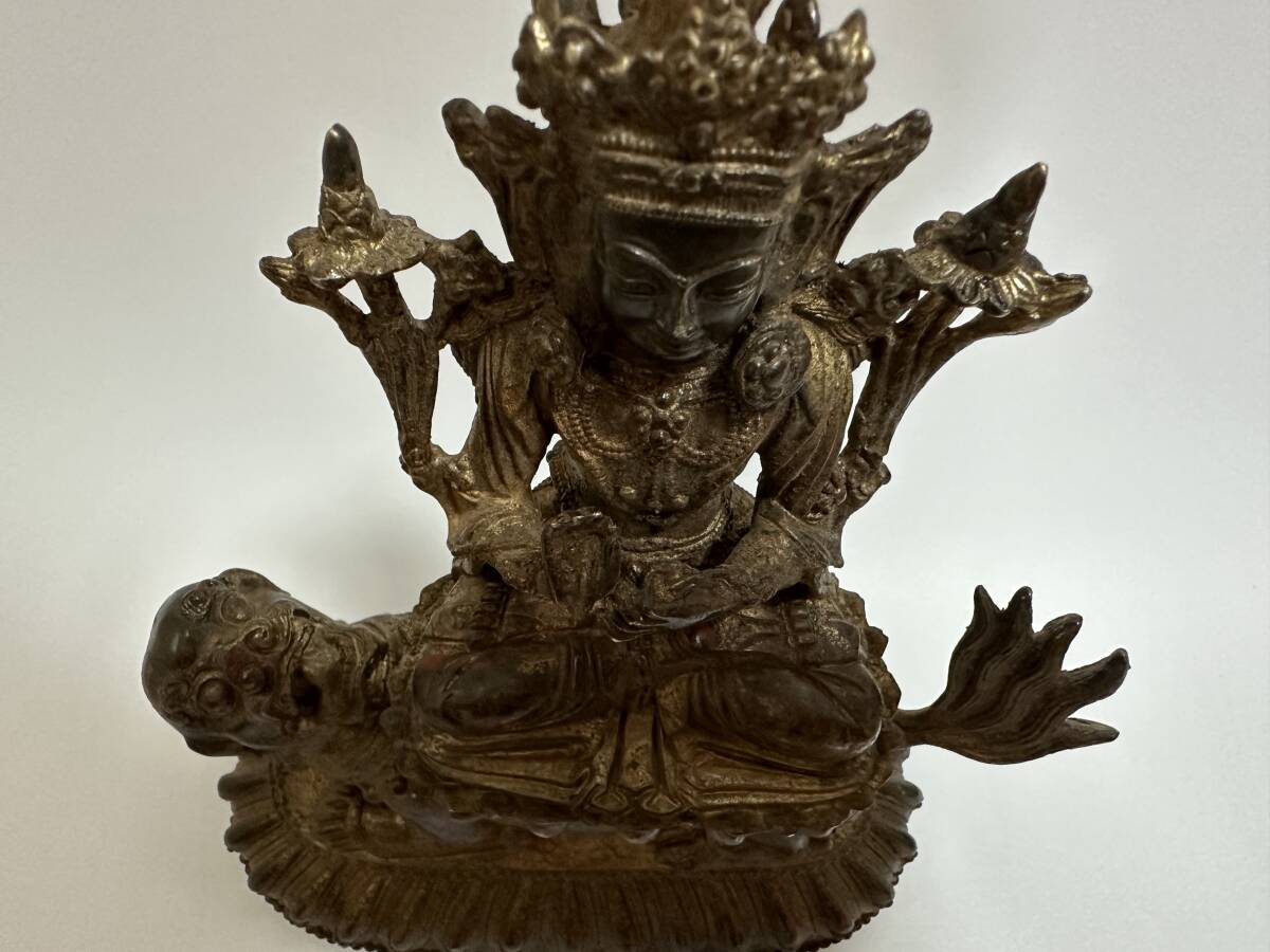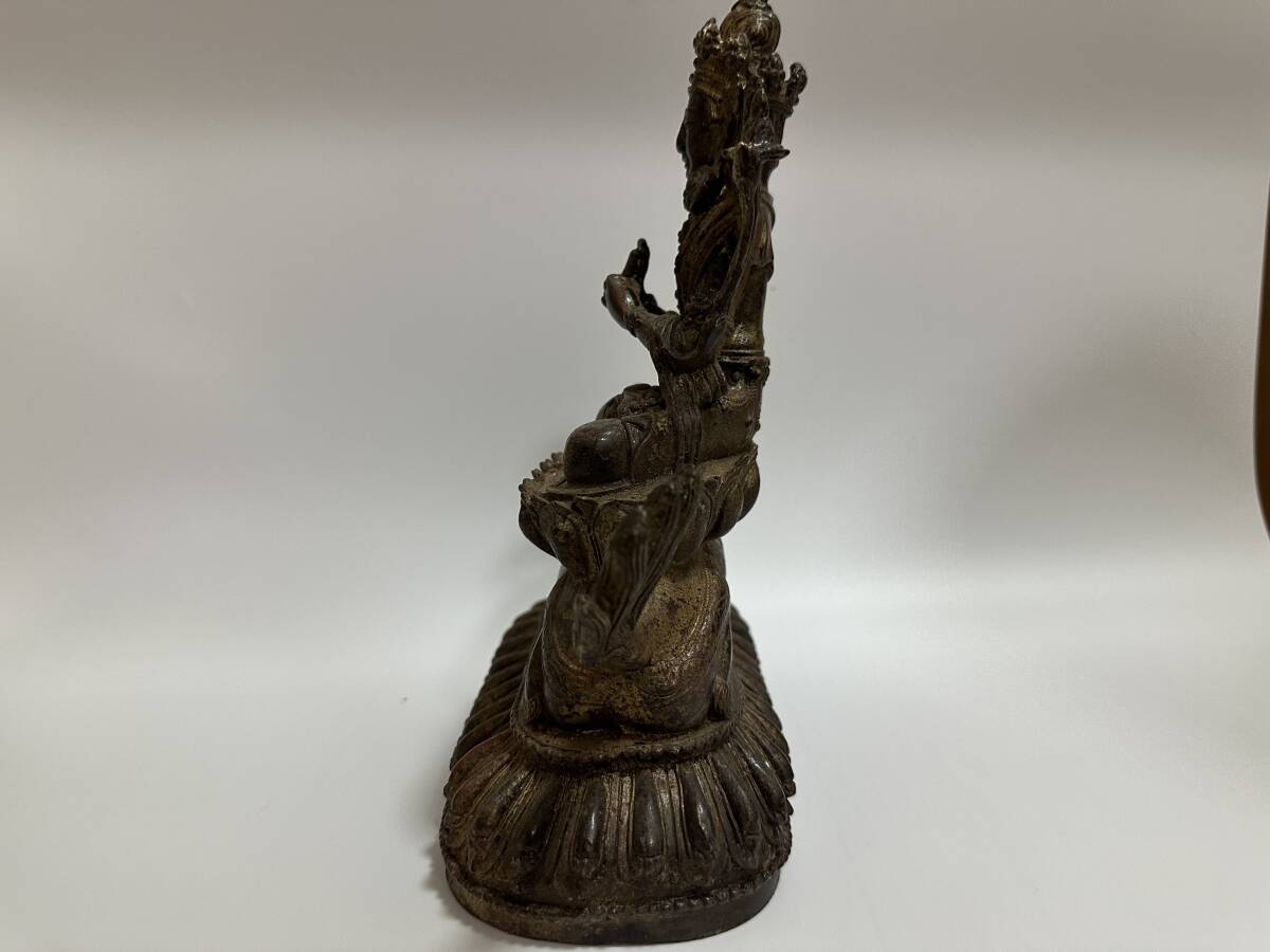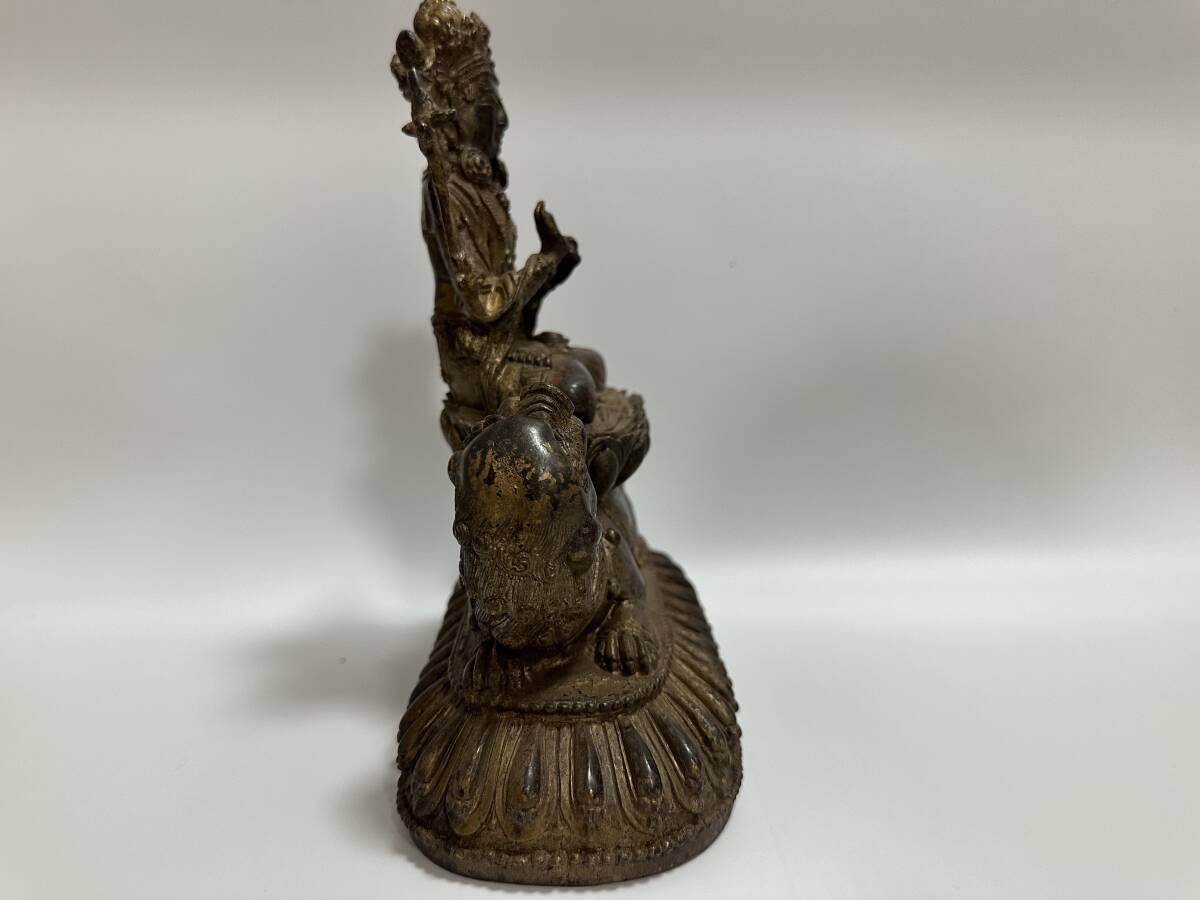 時代 仏教美術 文殊菩薩造像 獅子 座像 高23㎝ 細工彫刻 銅製 旧物 仏教古美術 銅仏像 古美術 2114g