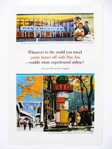 1963年にアメリカの雑誌に掲載された米国パンアメリカン航空の広告(60年前に印刷された広告のオリジナル)です。
