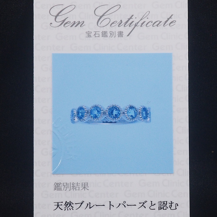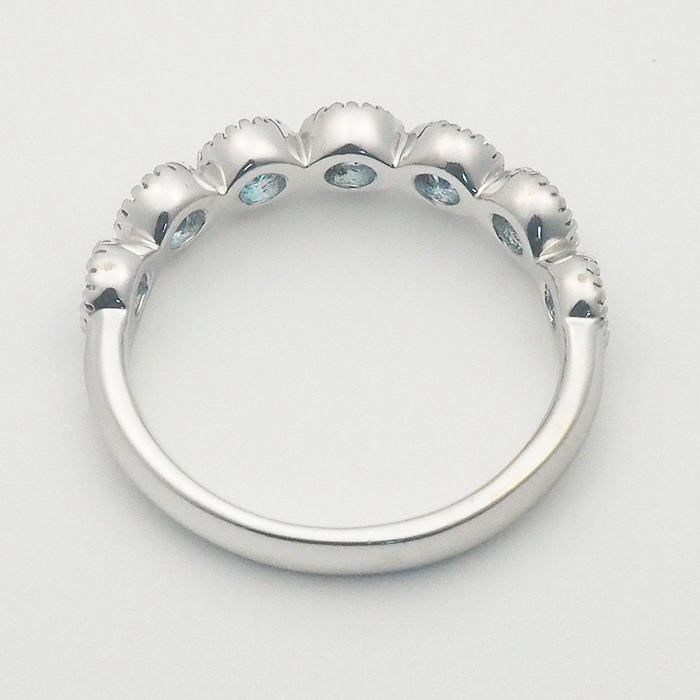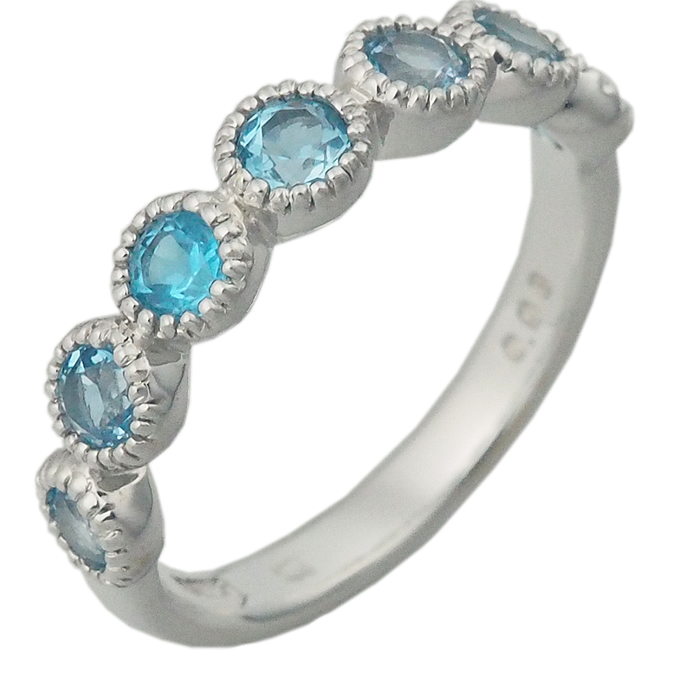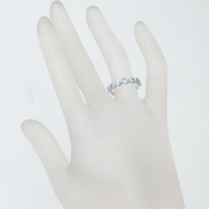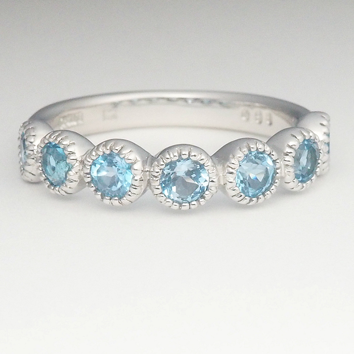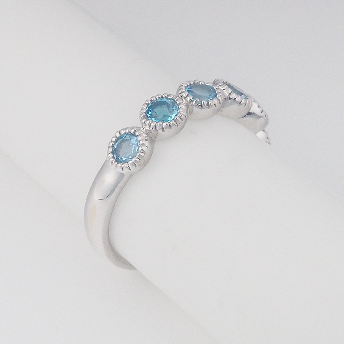 透明感あふれるブルートパーズをセットした、18金ホワイトゴールド製の素敵なリングです。