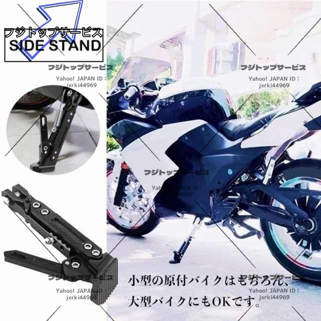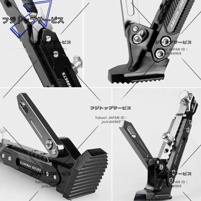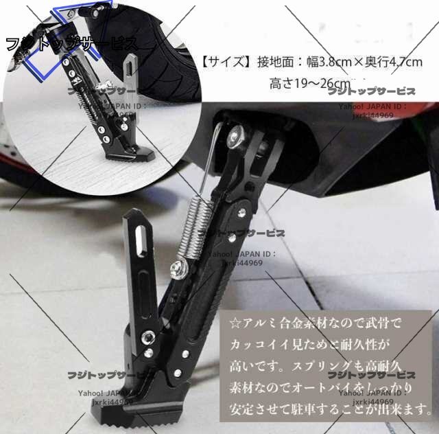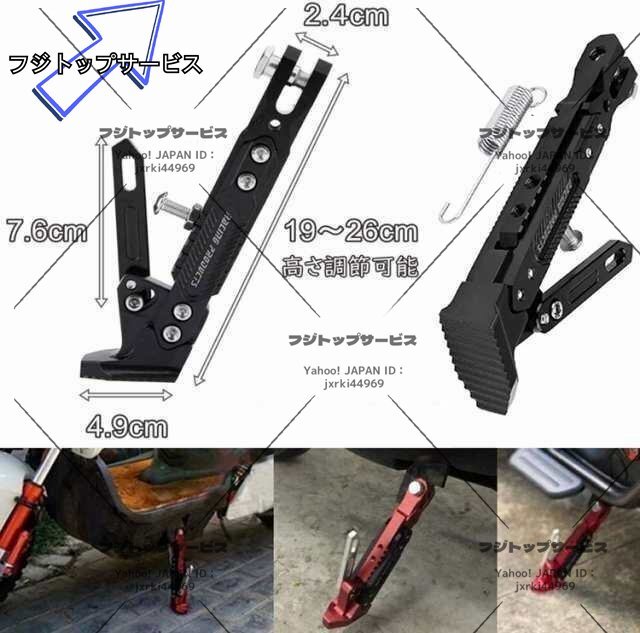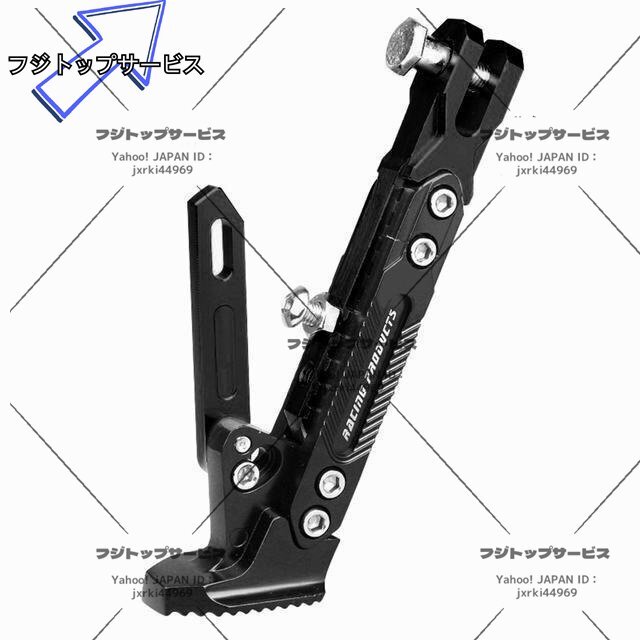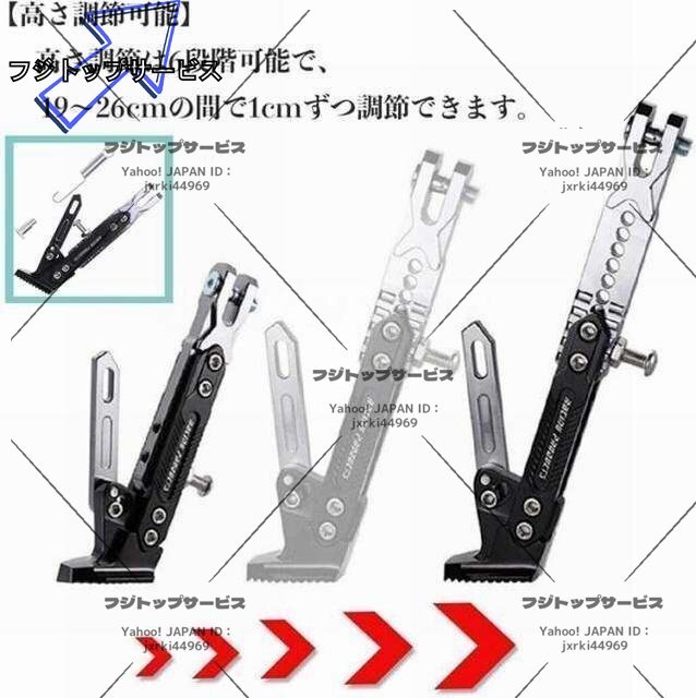 バイク キックスタンド サイドスタンド 高さ調節可能 19cm - 26cm メンテナンススタンド アルミ合金 ブラック