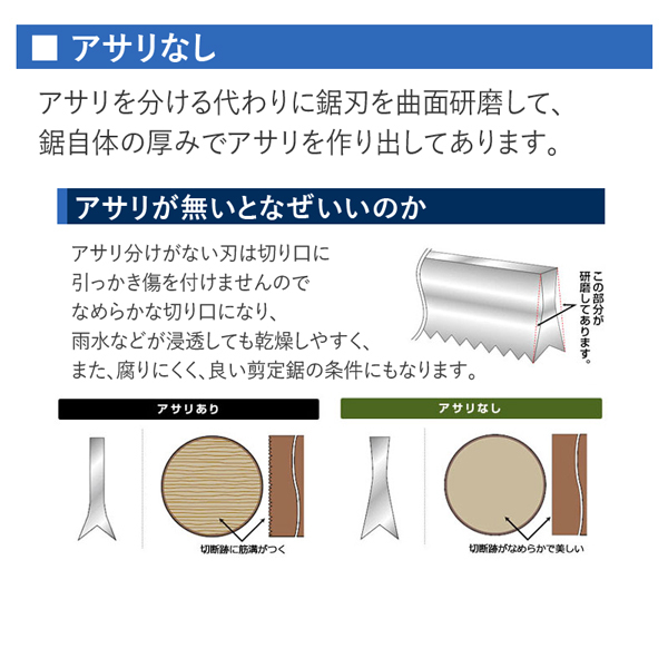 アサリが無いことによって、切り口はカンナを掛けたような綺麗な切り口になります。