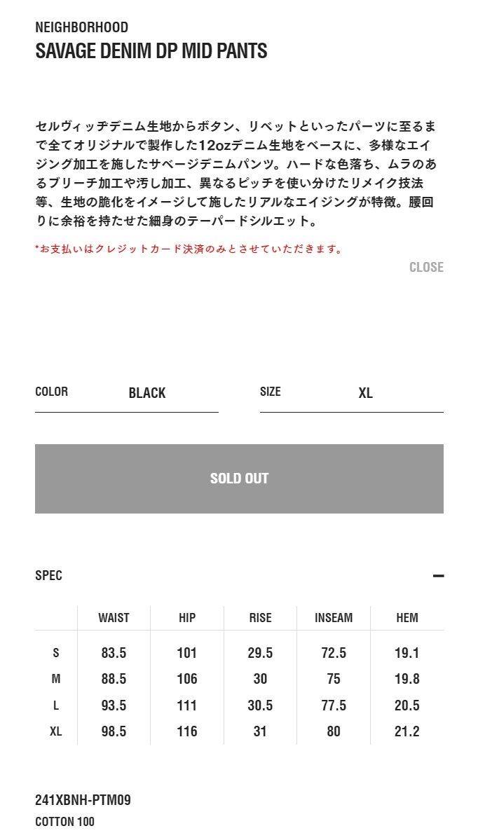 商品名:NEIGHBORHOOD SAVAGE DENIM DP MID PANTS 241XBNH-PTM09 カラー:ブラック サイズ:XL 状態:新品・未使用 |