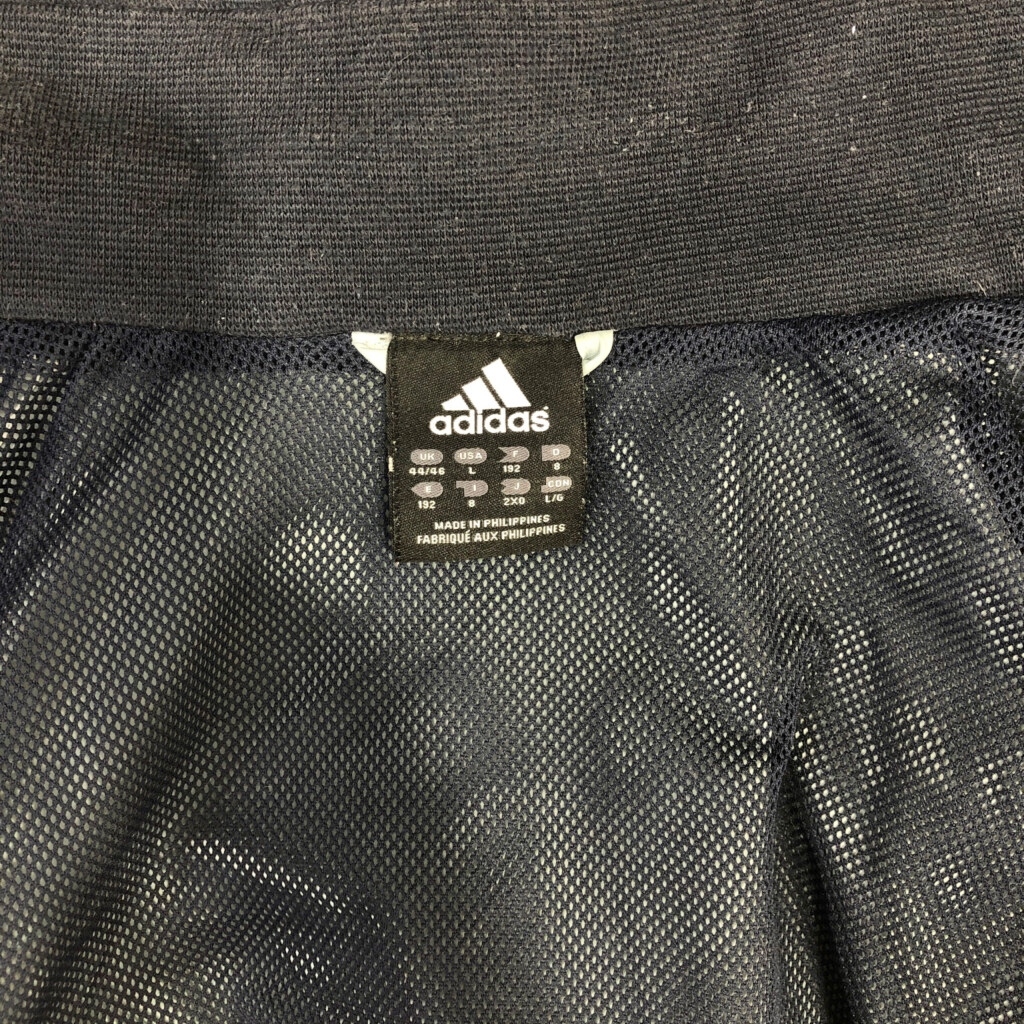 [商品管理番号] S2281 [ブランド] adidas/アディダス [サイズ] L [実寸サイズ] 着丈:約72cm 身幅:約63cm 裄丈:約96cm 袖下丈:約57cm [主な素材] 表地 : ポリエステル 裏地 : 13897 [色] ネイビー [仕様] 00年代 スポーツ ウィンドブレーカー [状態] 汚れ:首元、袖、袖先 | |||