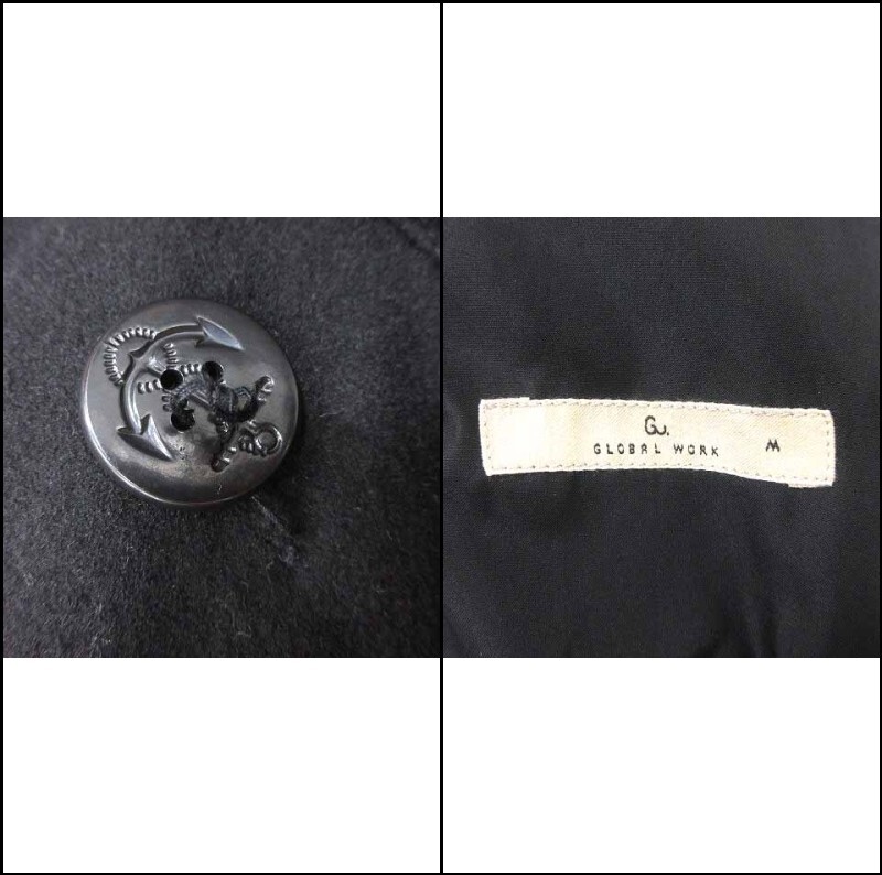 グローバルワーク GLOBAL WORK ピーコート Pコート 総裏地 ウール M 黒 ブラック /YK メンズ