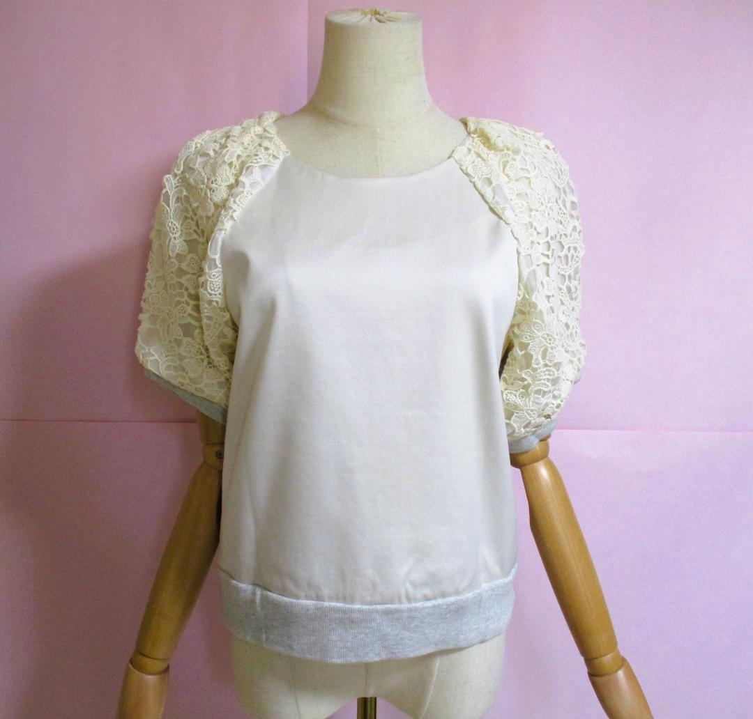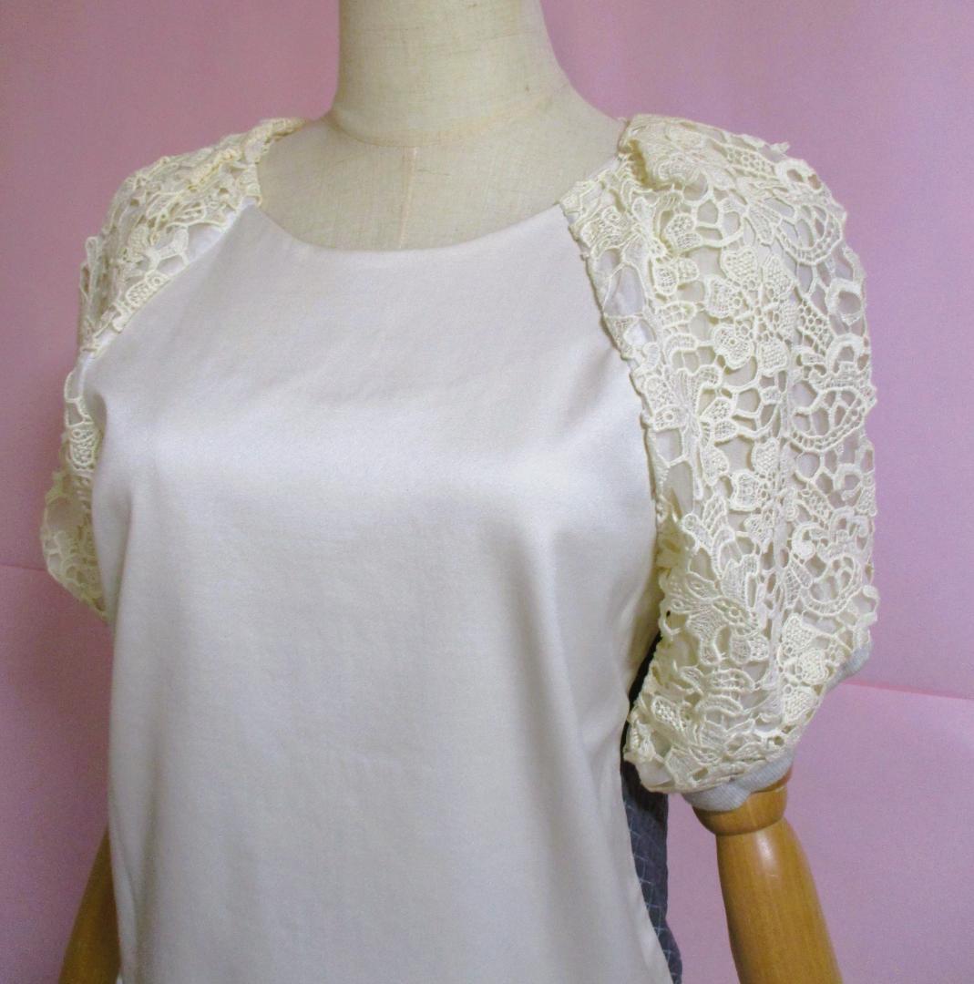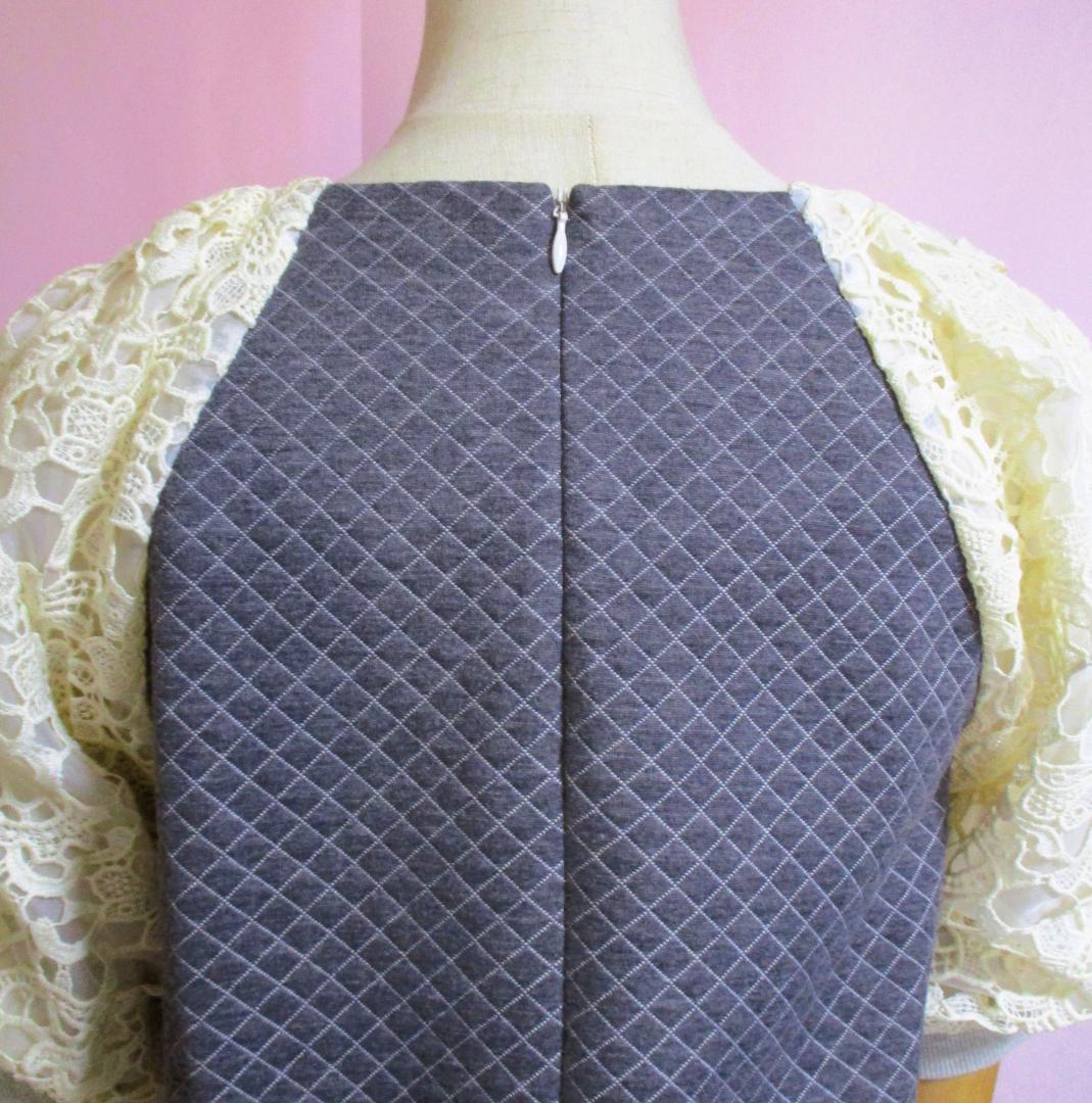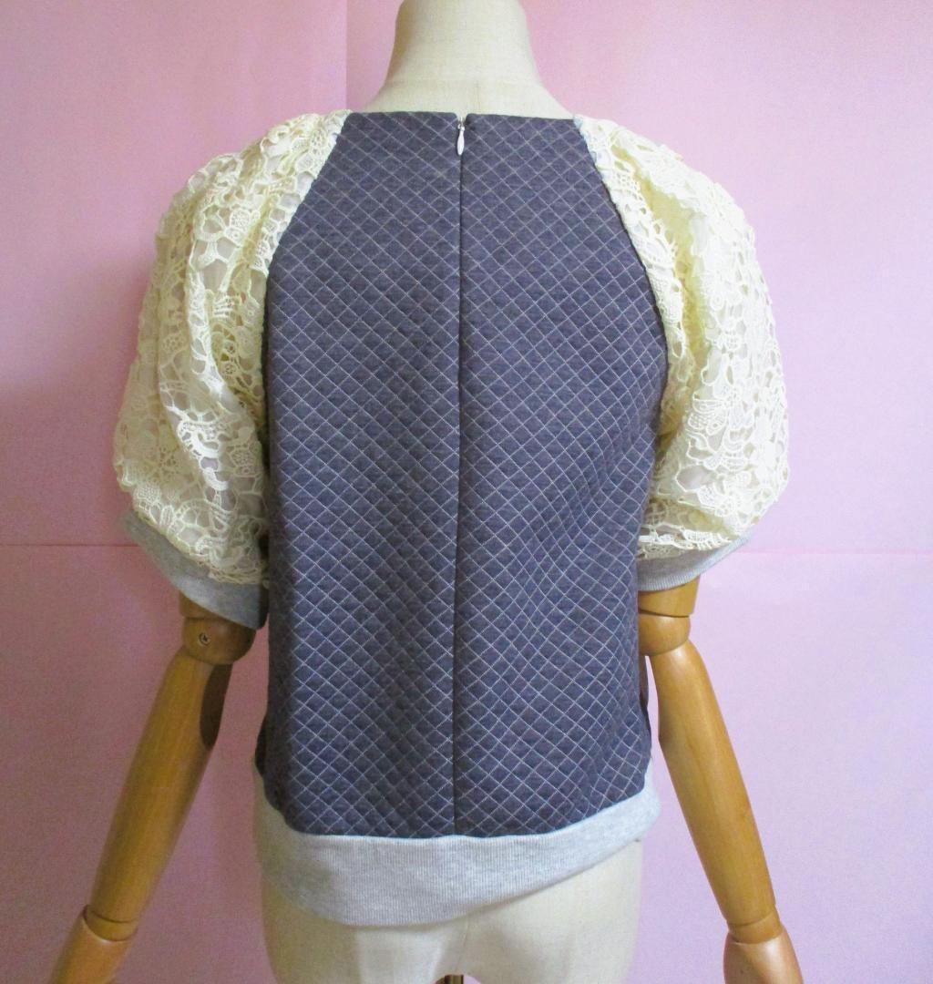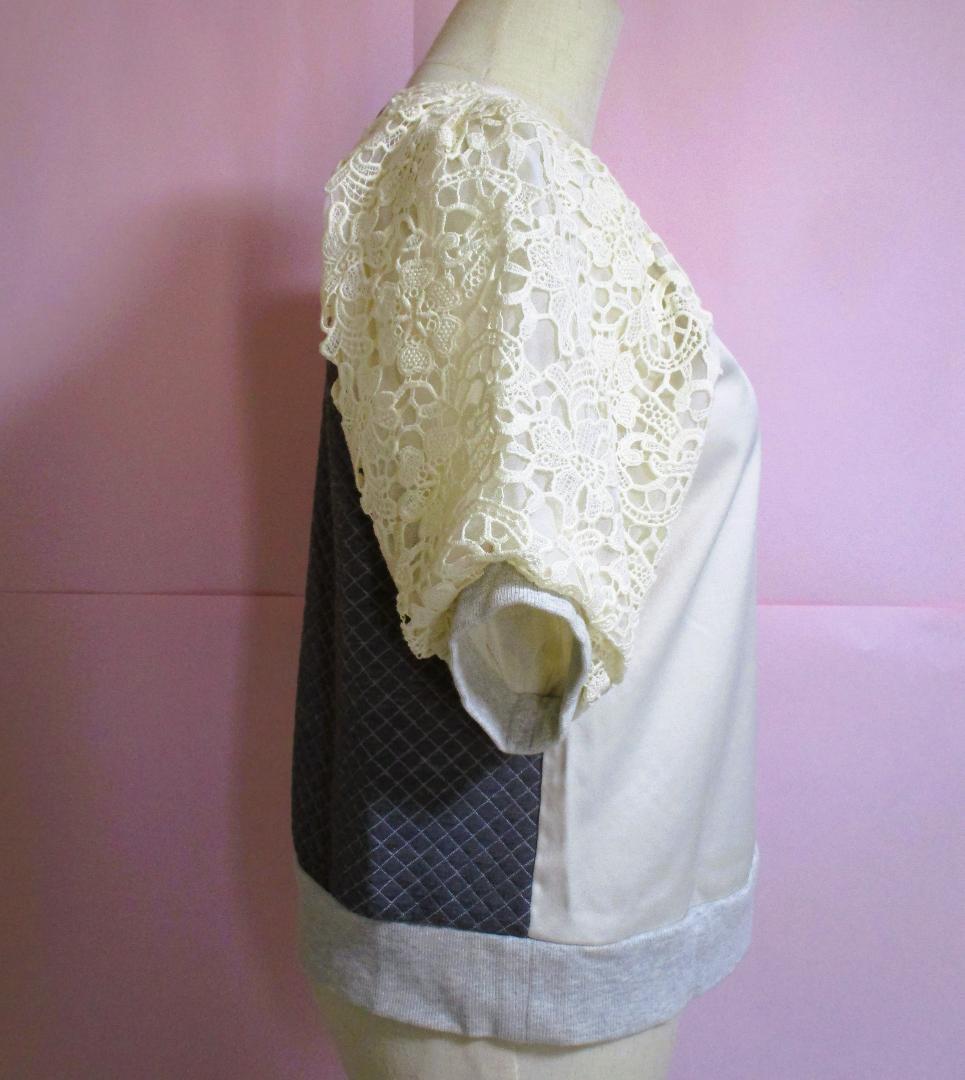 お袖はレース 後ろ身頃はキルティング素材 前身頃は無地の布帛となっています