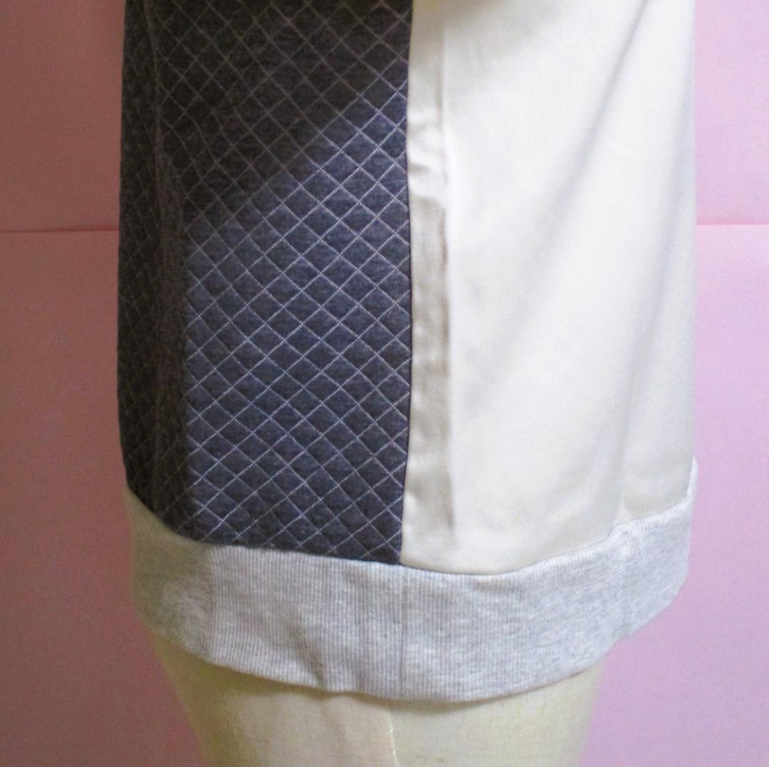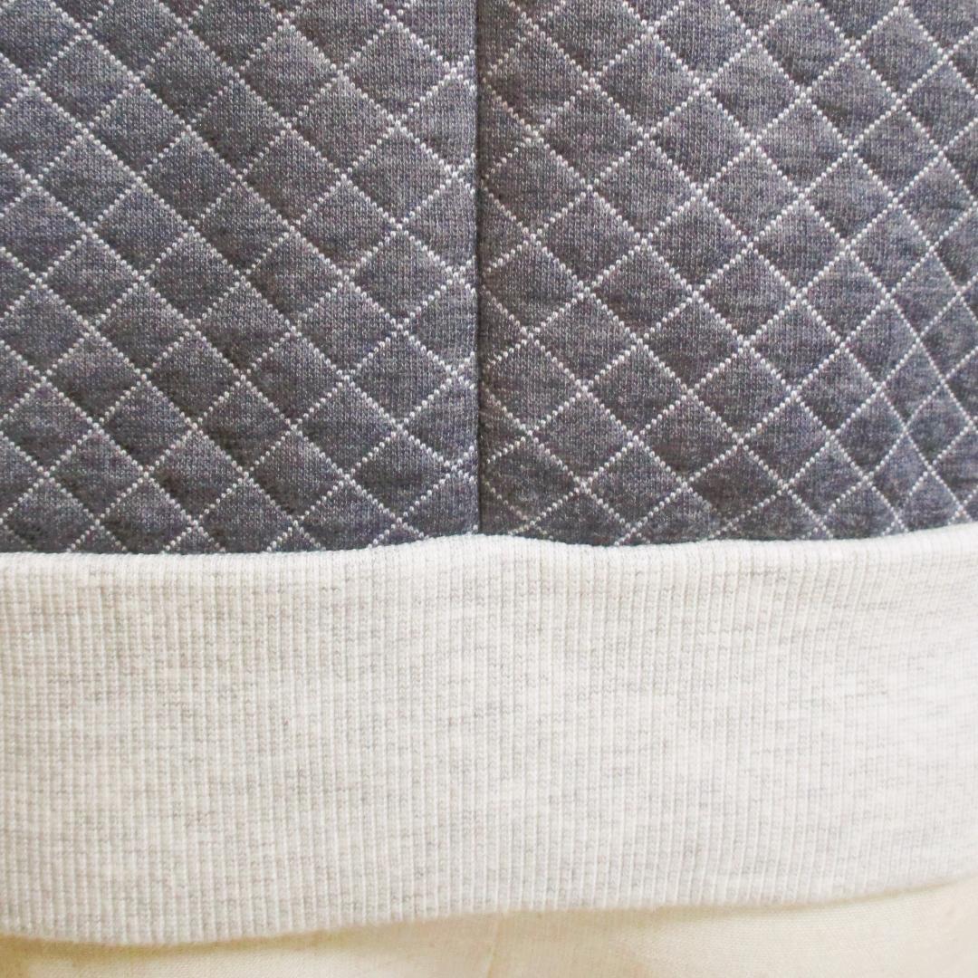 グレーのキルティング部分のカジュアルな印象の生地とアイボリーの前身頃とお袖のレース部分のキレイめな印象の生地の切替がすごくオシャレです