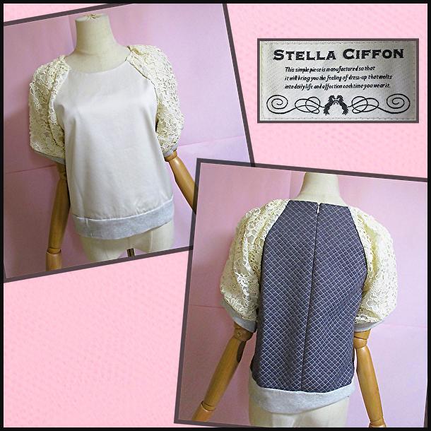 【ステラ シフォン】異素材使いトレーナー☆プルオーバー☆レース キルティング STELLA CIFFON 五分袖 きれいめカジュアル 匿名発送