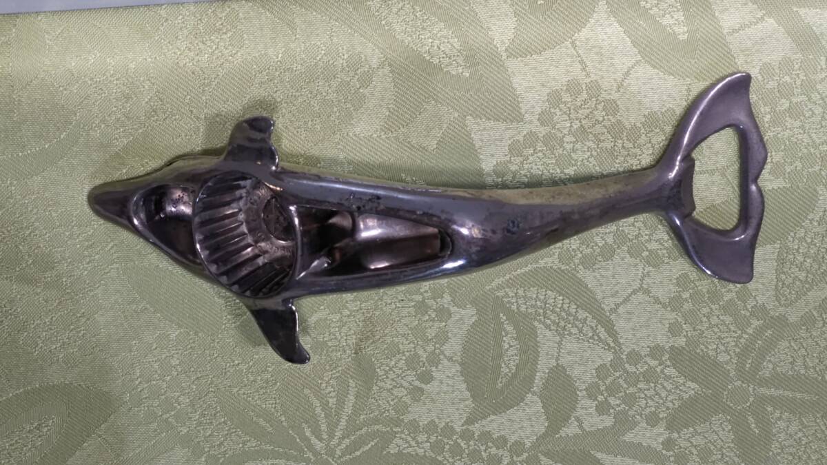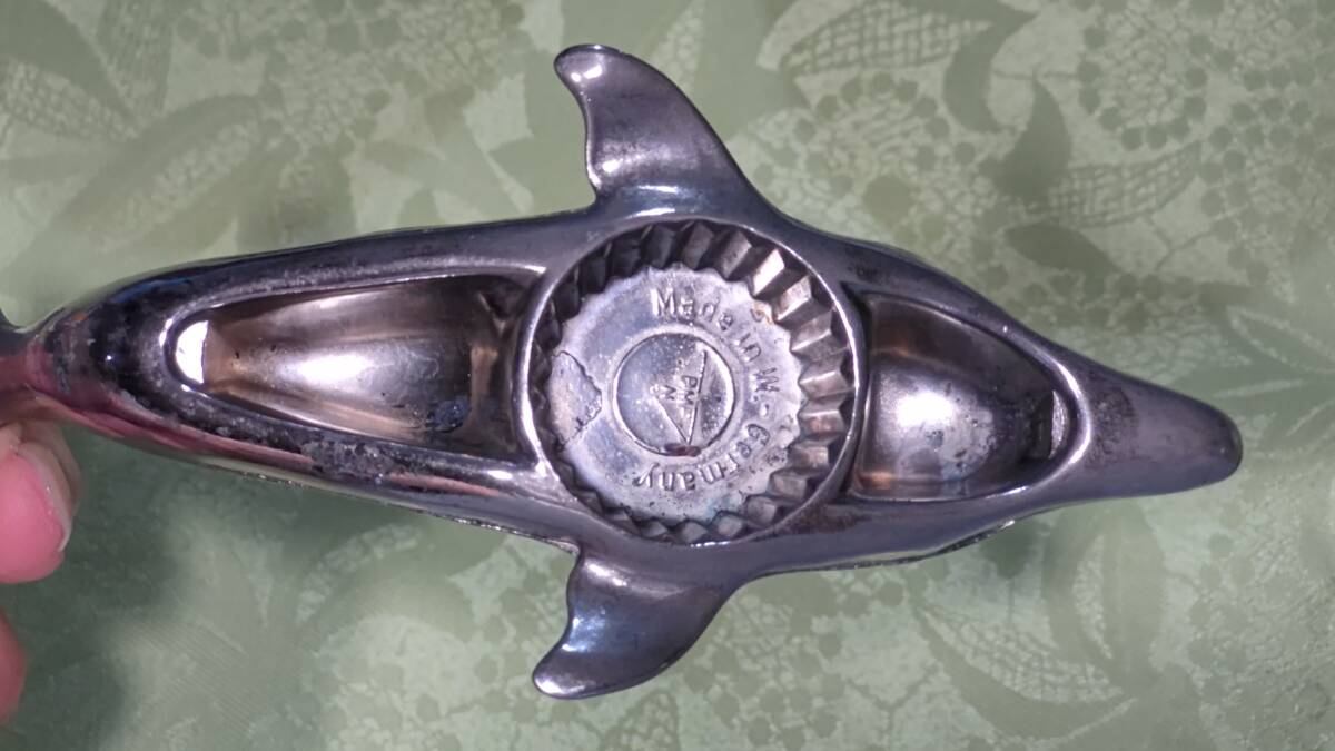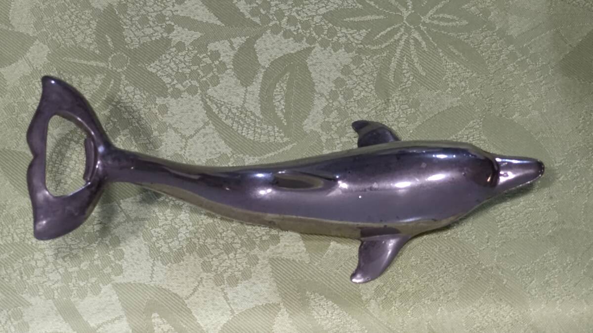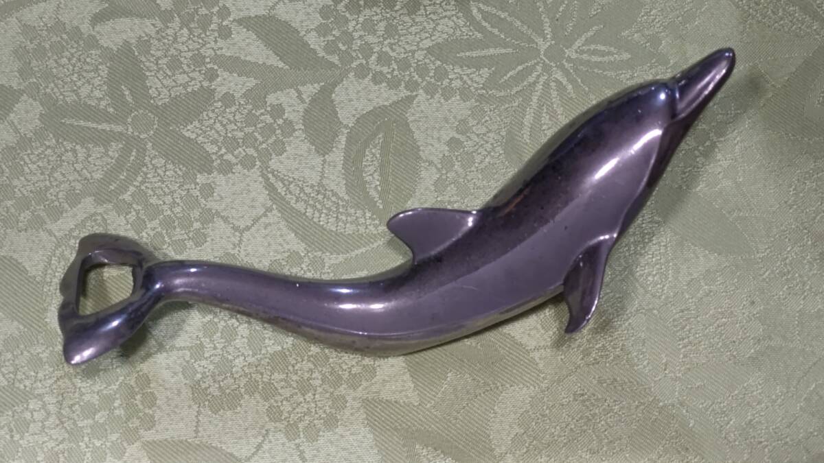 1012-14 ヴィンテージ 1970~1980頃 旧西ドイツ製 WMF クロームプレート製 栓抜き 蓋開け 17×6×6㎝ 260g イルカモチーフ レア