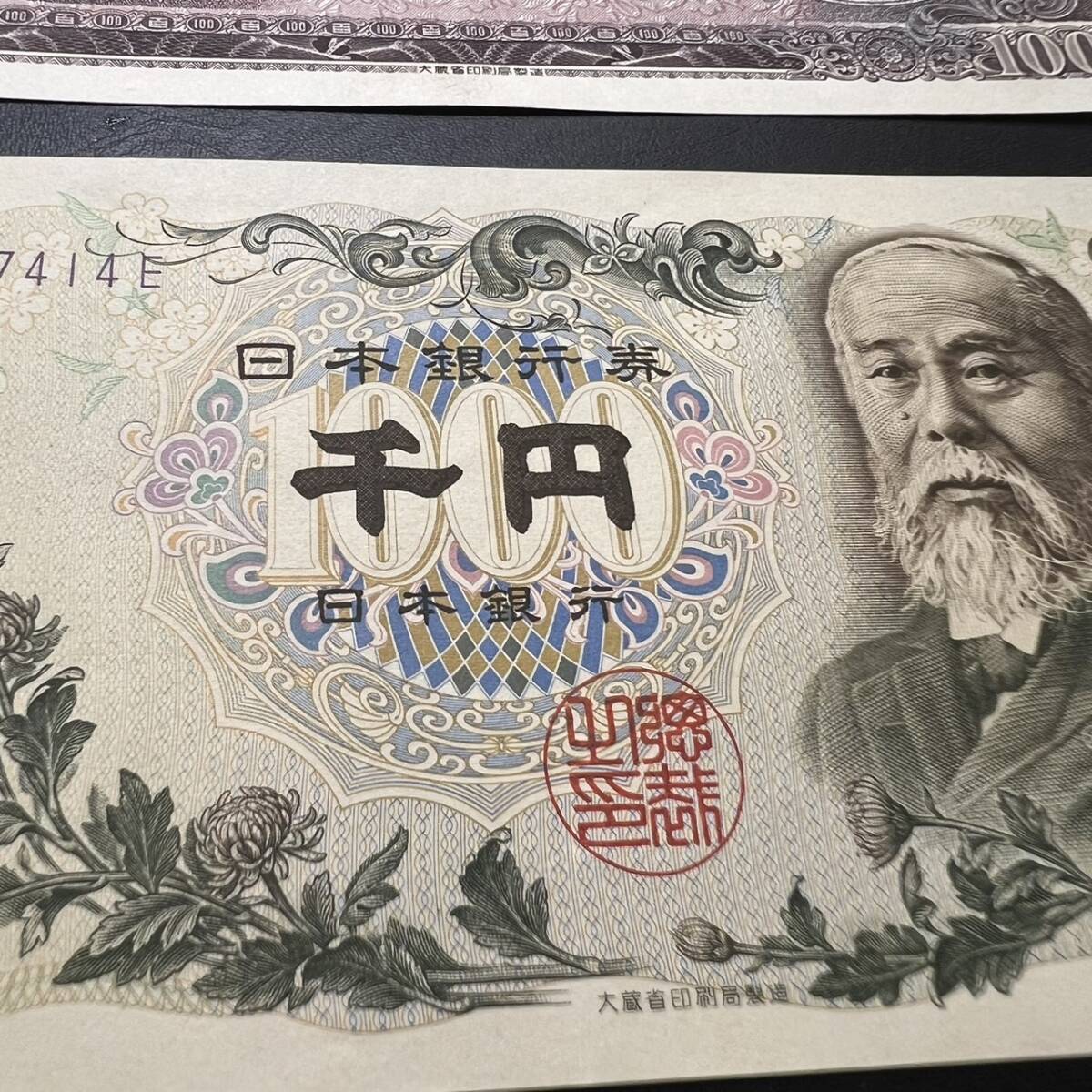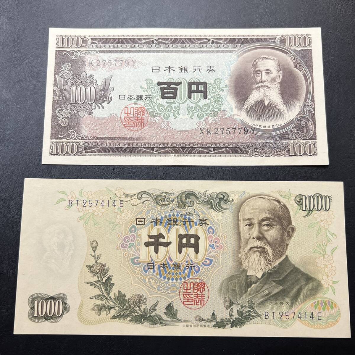 【同梱可】ピン札 板垣退助 100円 伊藤博文 1000円 2枚セット 日本銀行券 アンティーク コレクション 紙幣 古銭 札 6MI1417