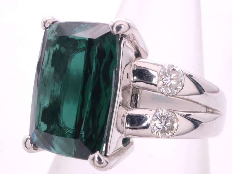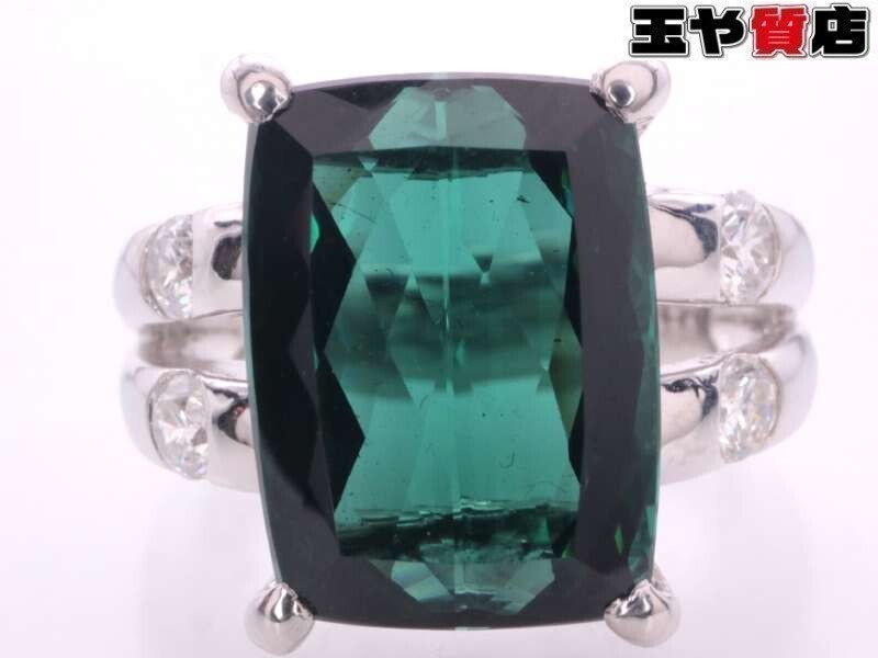 トルマリン4.84ct ダイヤ0.33ct デザイン プラチナ リング 11号 新品同様