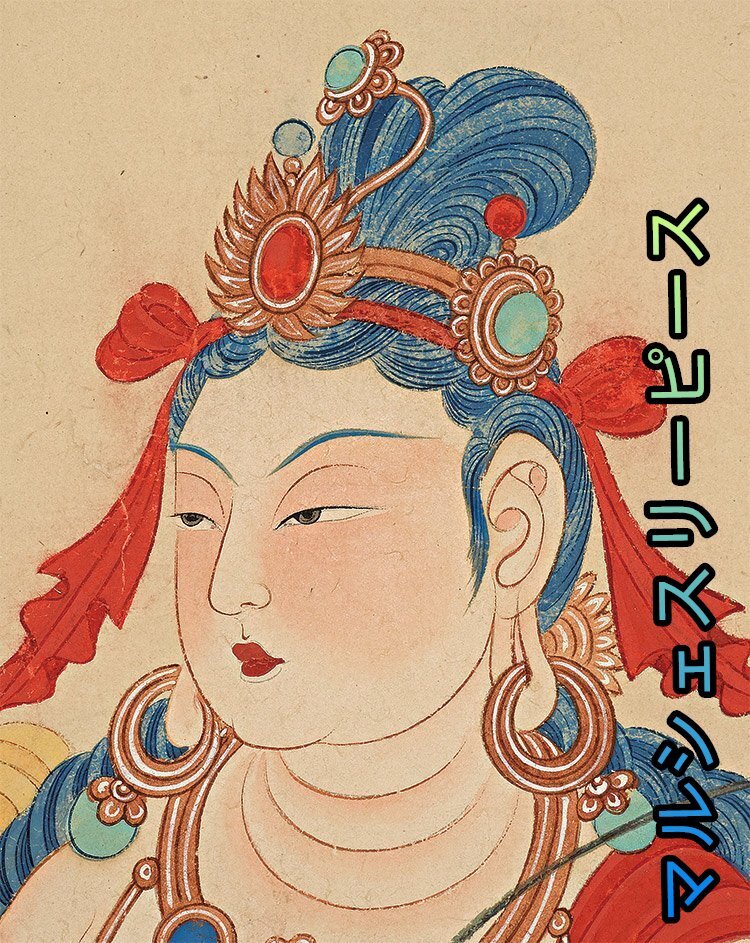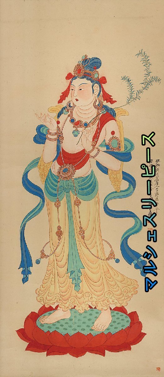 【宣紙画芯】張大千 敦煌壁画 莫高窟 観音大士像 仏像 菩薩像 観音像 仏図 縦幅 東洋画 国画 中堂画 掛け物 未表装Y38102