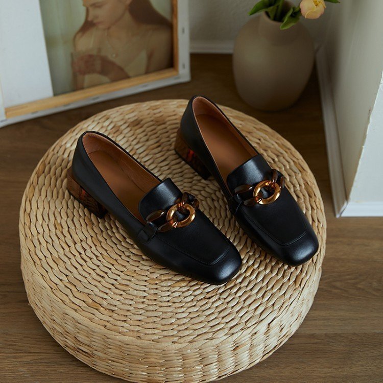 新品  パンプス ローファー レディース レディースシューズ 革靴 PU革 スリッポンシューズ ローヒール ブラック 23cm Q308