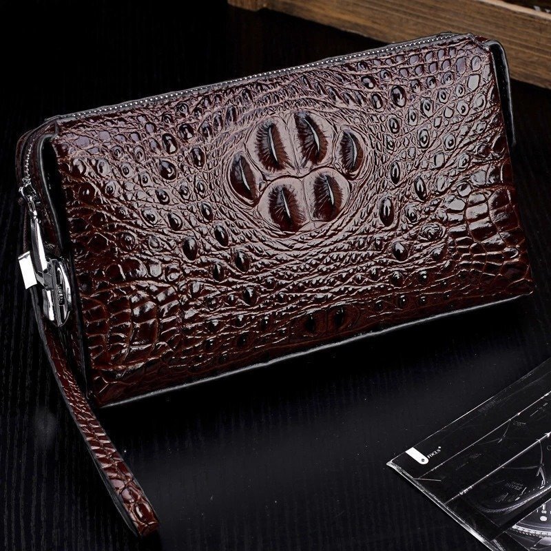 男性用 クロコダイル パターン レザーハンドバッグ 高品質の高級ウォレット 盗難防止 ロック付き ビジネス用