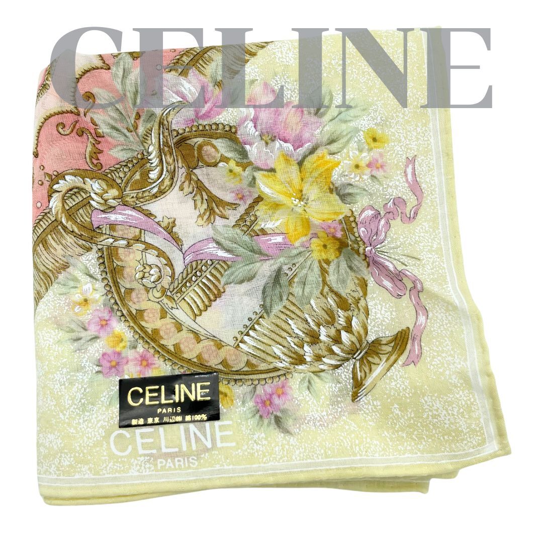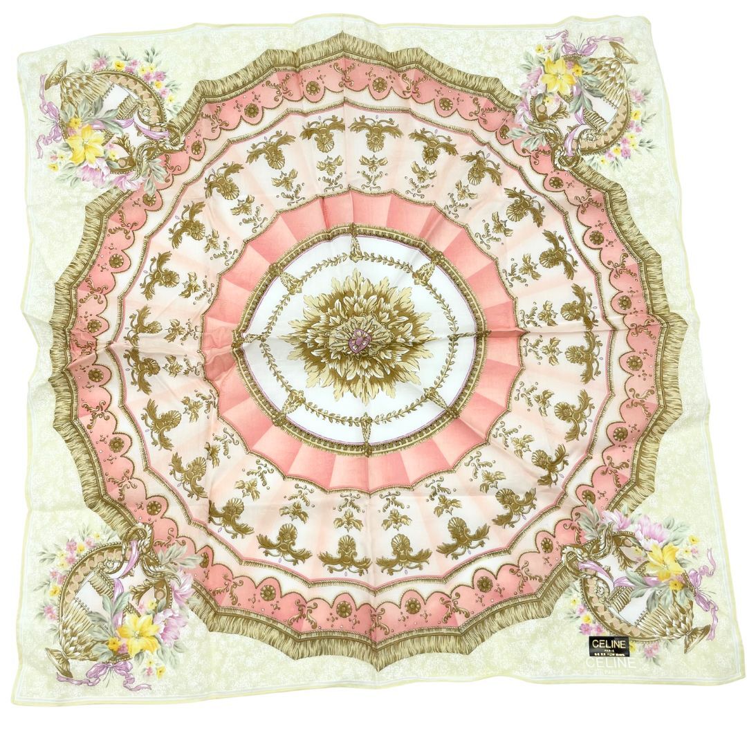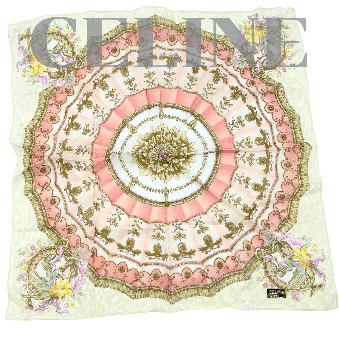 AC09-149 【未使用】CELINE セリーヌ ハンカチ スカーフ ピンク 花柄
