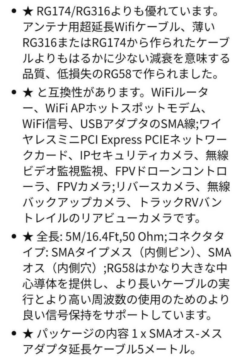 | RG58/PP-SMAケーブル/LANアンテナケーブル/延長ケーブル/5m/2つ/未使と使用品 | |||