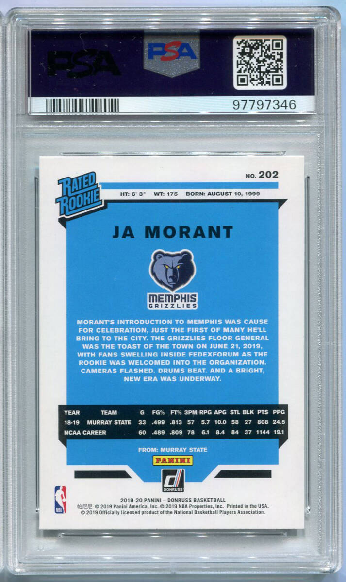 2019-20 Donruss #202 Ja Morant ジャモラント グリズリーズ RC PSA 10
