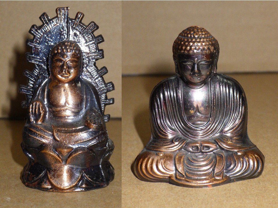 金属製 ミニチュア鎌倉の大仏 と 奈良の大仏 2体 大佛像 彫刻 彫金 置物