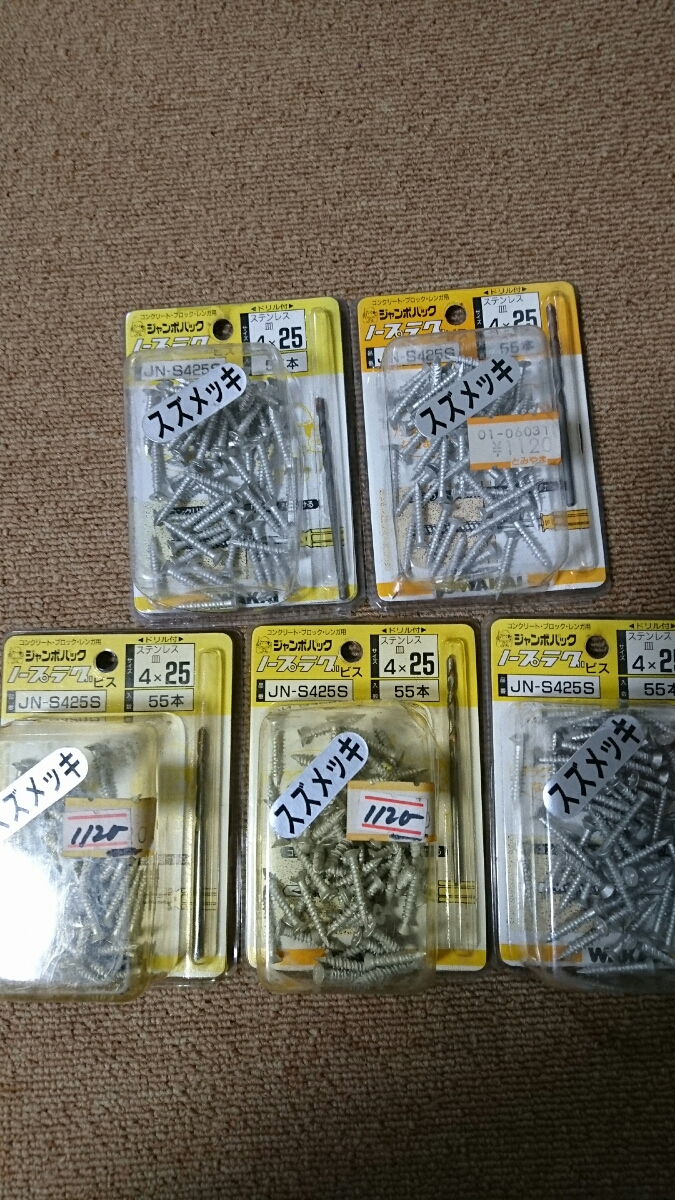 ジャンク品/WAKAI/ノープラグビス/JN-S425S/ステンレス/スズメッキ/皿4×25/下穴ドリル付き/1P入数約55本×5Pセット