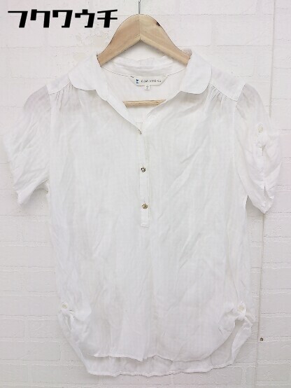 ◇ KUMIKYOKU 組曲 シャドーストライプ ヘンリーネック 半袖 カットソー サイズ2 ホワイト レディース