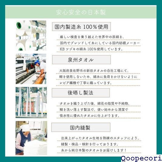 【日本製へのこだわり】国内紡績KBツヅキの糸を100%使用しています。出雲大社で有名な島根県出雲市で作られています。糸から国産の純国産タオルです。