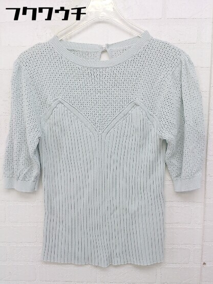 ◇ anatelier アナトリエ リブ コットン ニット 半袖 セーター サイズ38 ライトブルー系 レディース