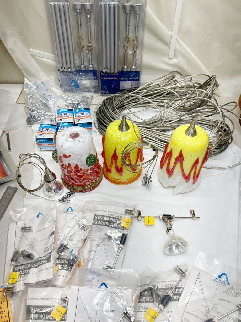D100 ワイヤーケーブル照明 ライト 手作り硝子吊り下げライト ペンダントライト 取り付け材料等色々まとめてダクトレール 8c/11b/4c
