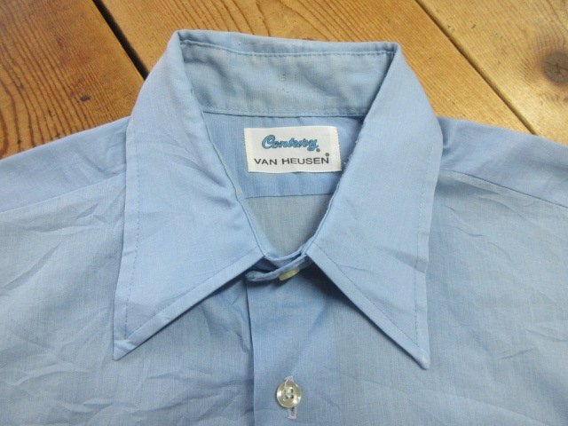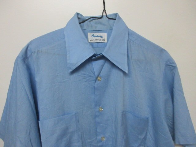 70s vintage 半袖シャツ L ブルー VAN HEUSEN ヴィンテージ アメカジ古着 sy3479