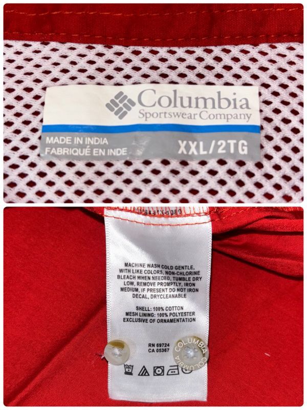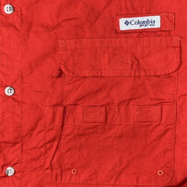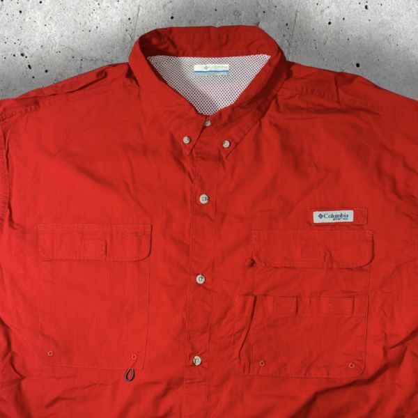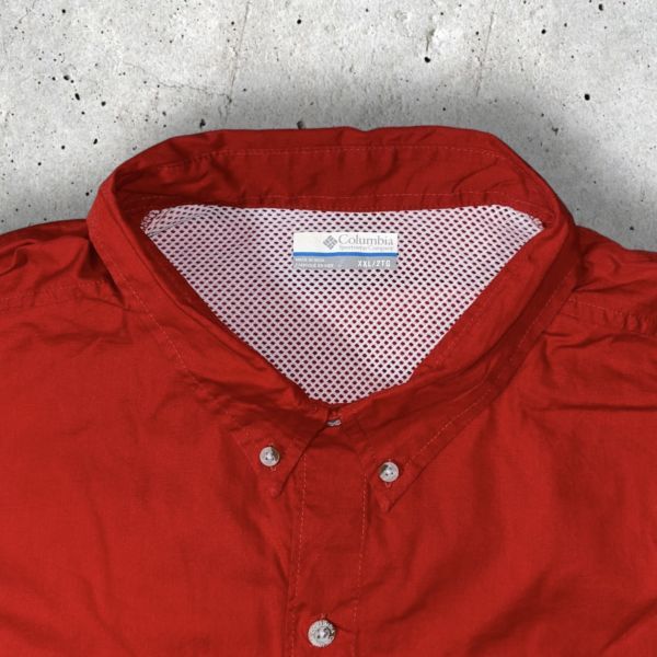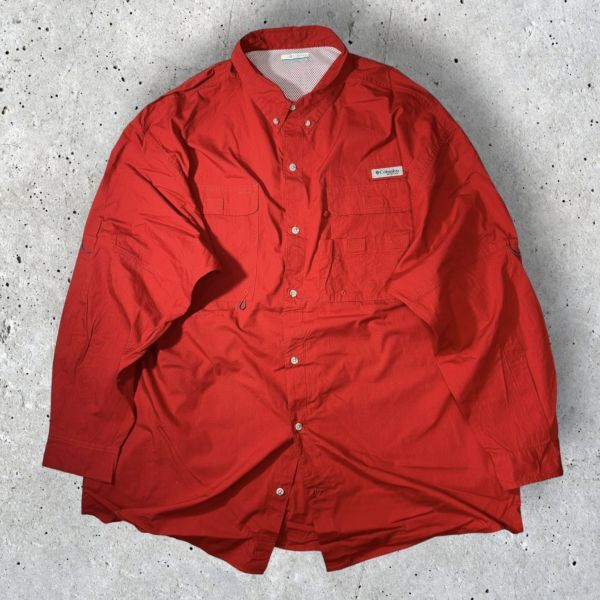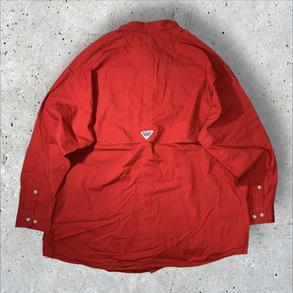 ★BIGサイズ★Columbia PFG フィッシング 長袖BDシャツ sizeXXL レッド系 ピスネーム ベンチレーション 刻印ボタン コロンビア クリーニング プレス済み USED 1631