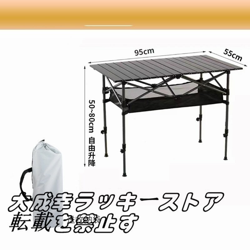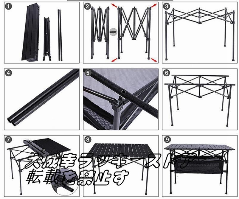 ピクニックテーブル 伸縮可 アウトドア インドア 折りたたみ式 キャンプテーブル 収納バッグ付 ビーチ 釣り 旅行 屋外 BBQ 黒
