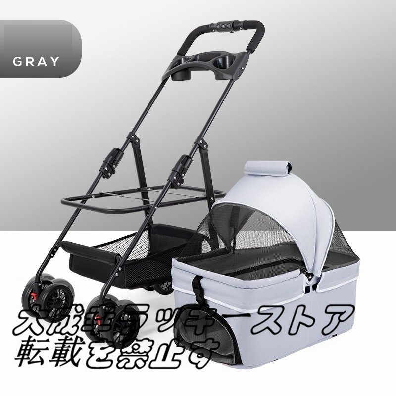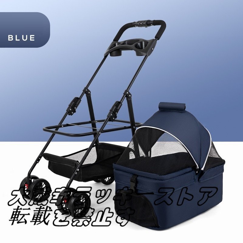 ペットカート分離式 折り畳み 4輪 ピンク ストッパー付き 小物入れ 手洗い 軽量 お出かけ 散歩 ブルー