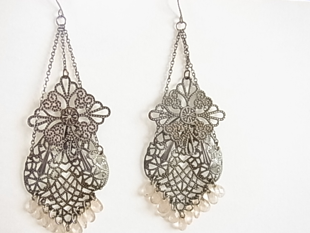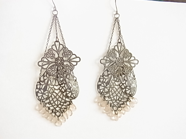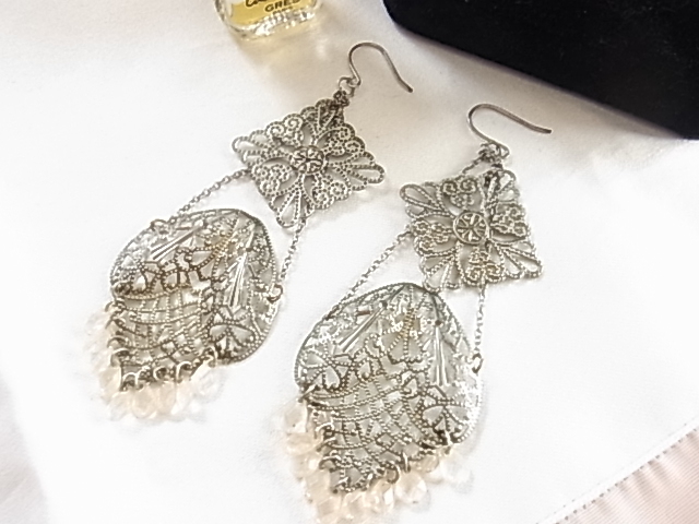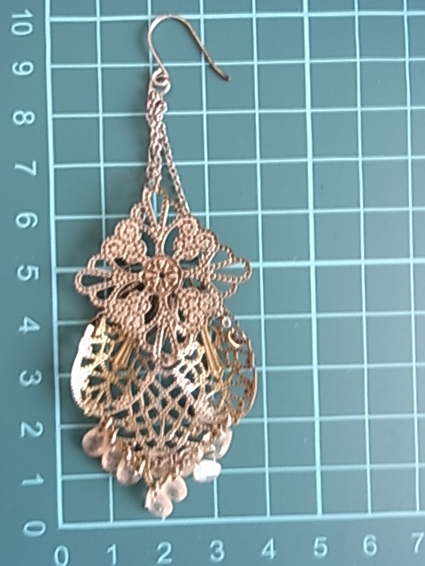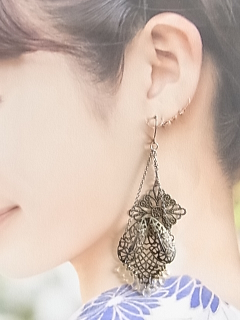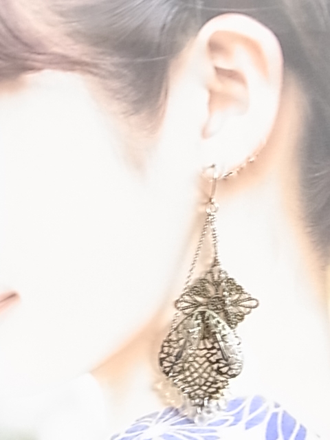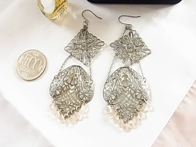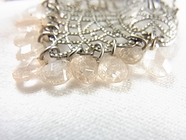 ビンテージ/ヴィンテージ アジアン調 大き目インパクト感 薄い桜貝トーンのピンクのビーズ付き 軽量 ダンス等にも素敵なピアス◆