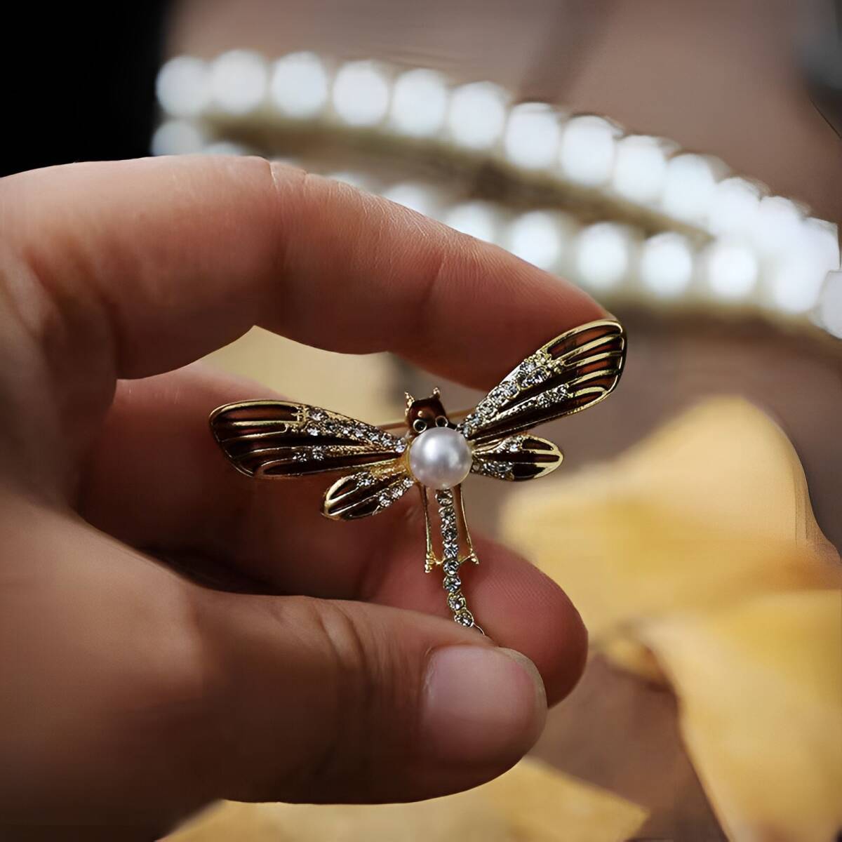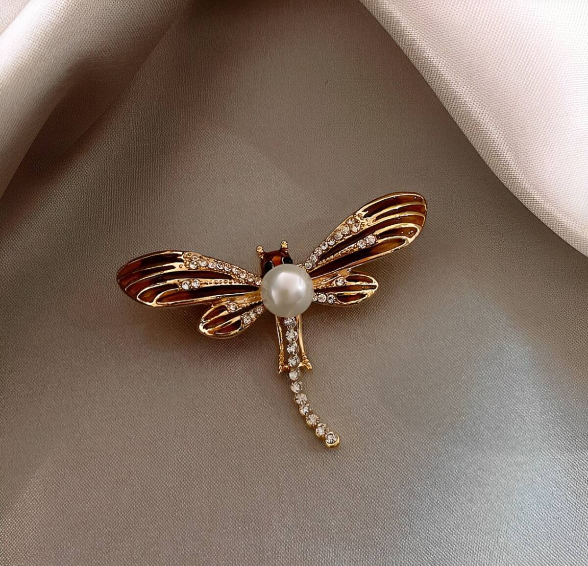 【蜻蛉】韓国ファッション パール トンボ ブローチ