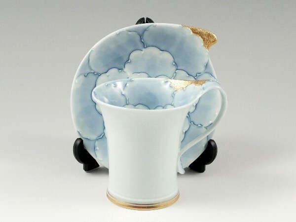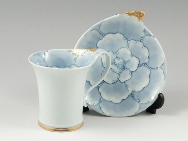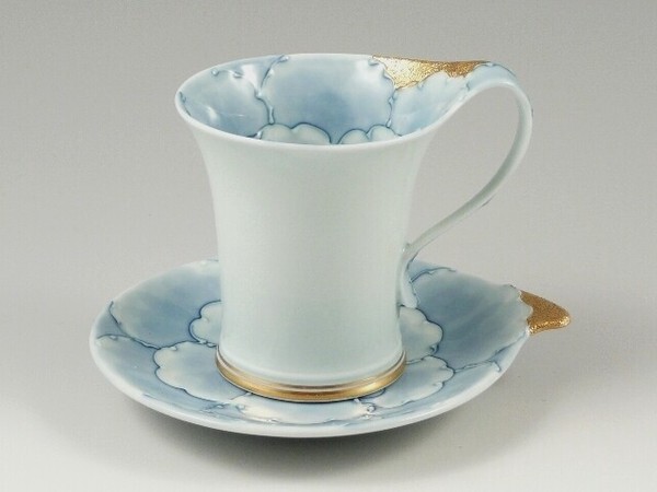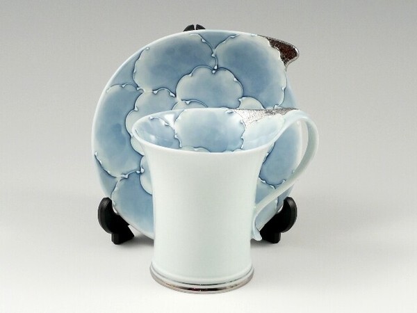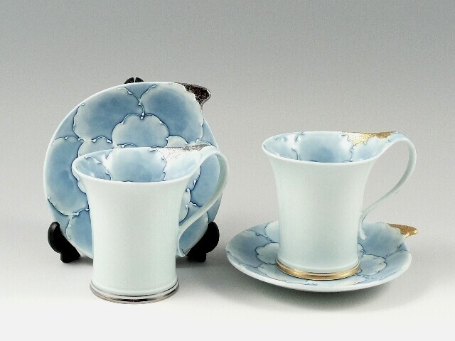 ゴールド&プラチナ牡丹ペアコーヒー碗皿