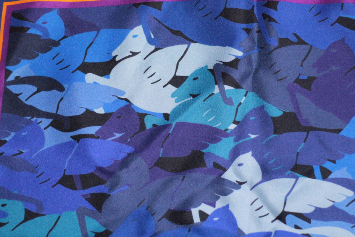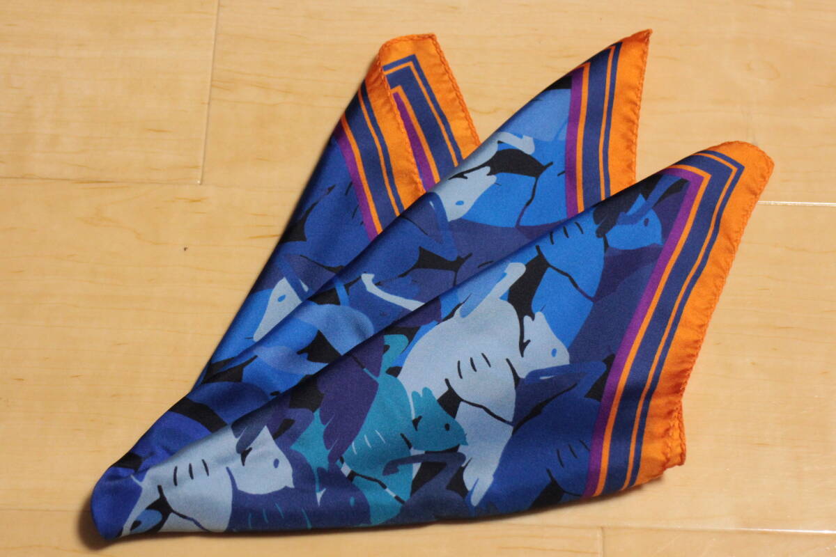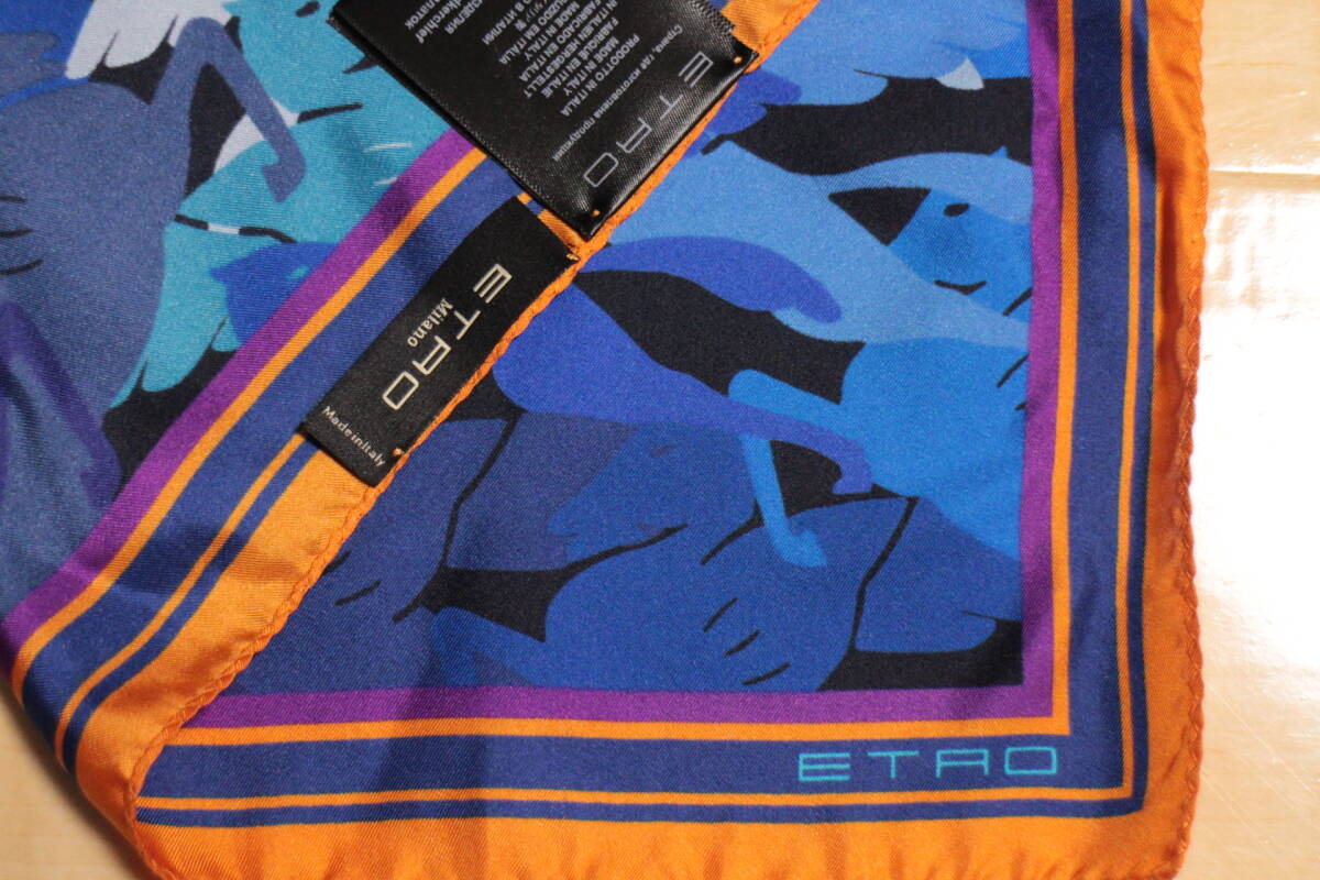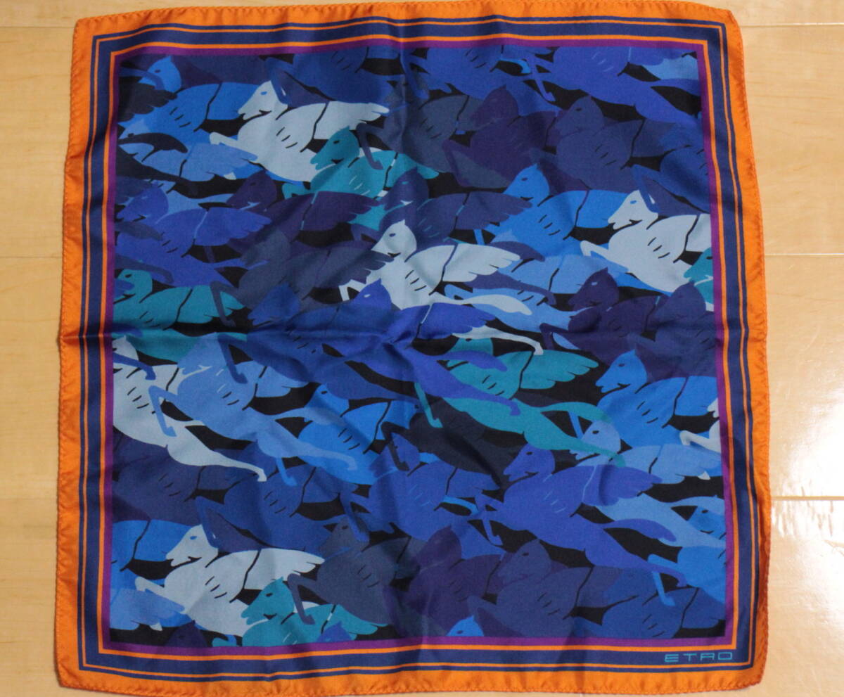 エトロ新品ポケットチーフ超華麗ブルーグラデーションペガサス迷彩*オレンジ*パープルトリミングハンドメイド