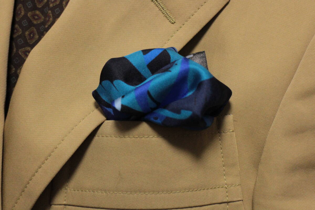 高級シルクのチーフらしく、これだけ多様な色を用いたデザインを、一切の色ダレ、