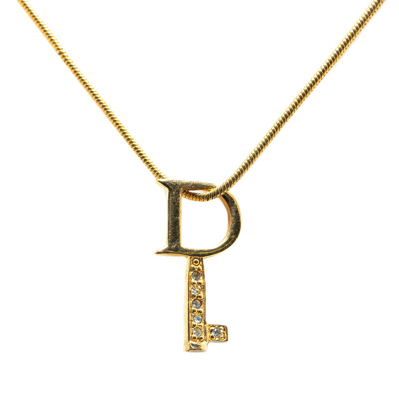 ディオール Dロゴ 鍵 モチーフ ラインストーン ネックレス ゴールド メッキ レディース Dior 【中古】