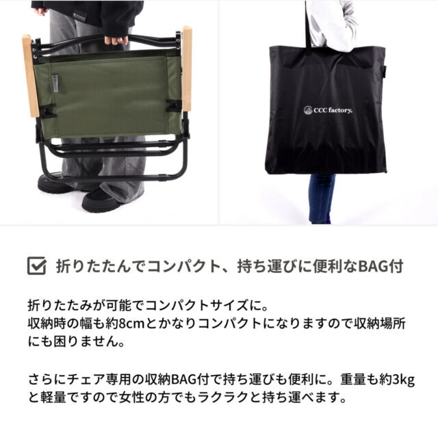 ○171【新品】CCC factory 黒x白 シースリーファクトリー キャンプチェア アウトドア インテリア 椅子 折りたたみ 持ち運びバッグ