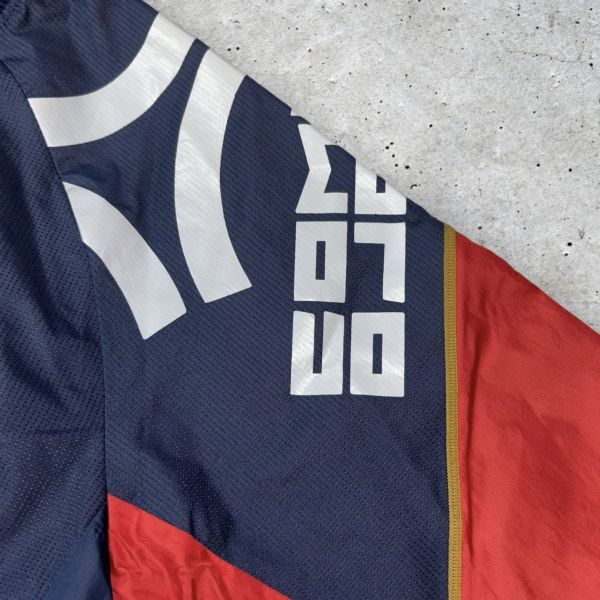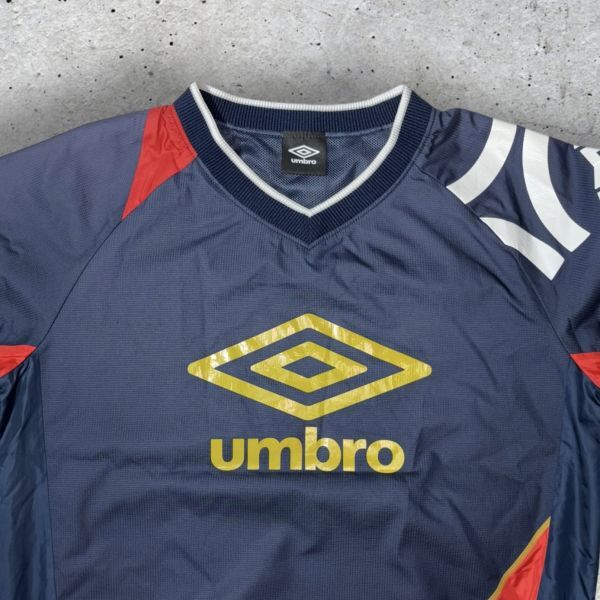 ★BIGロゴ★UMBRO プルオーバー ジャケット Vネック sizeS相当 ネイビー/レッド インナーメッシュ アンブロ 古着 クリーニング プレス済み 1667