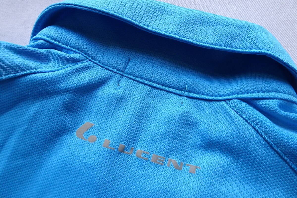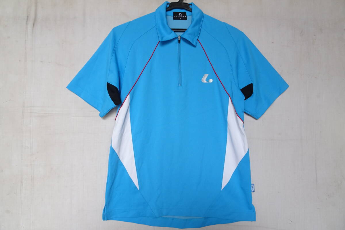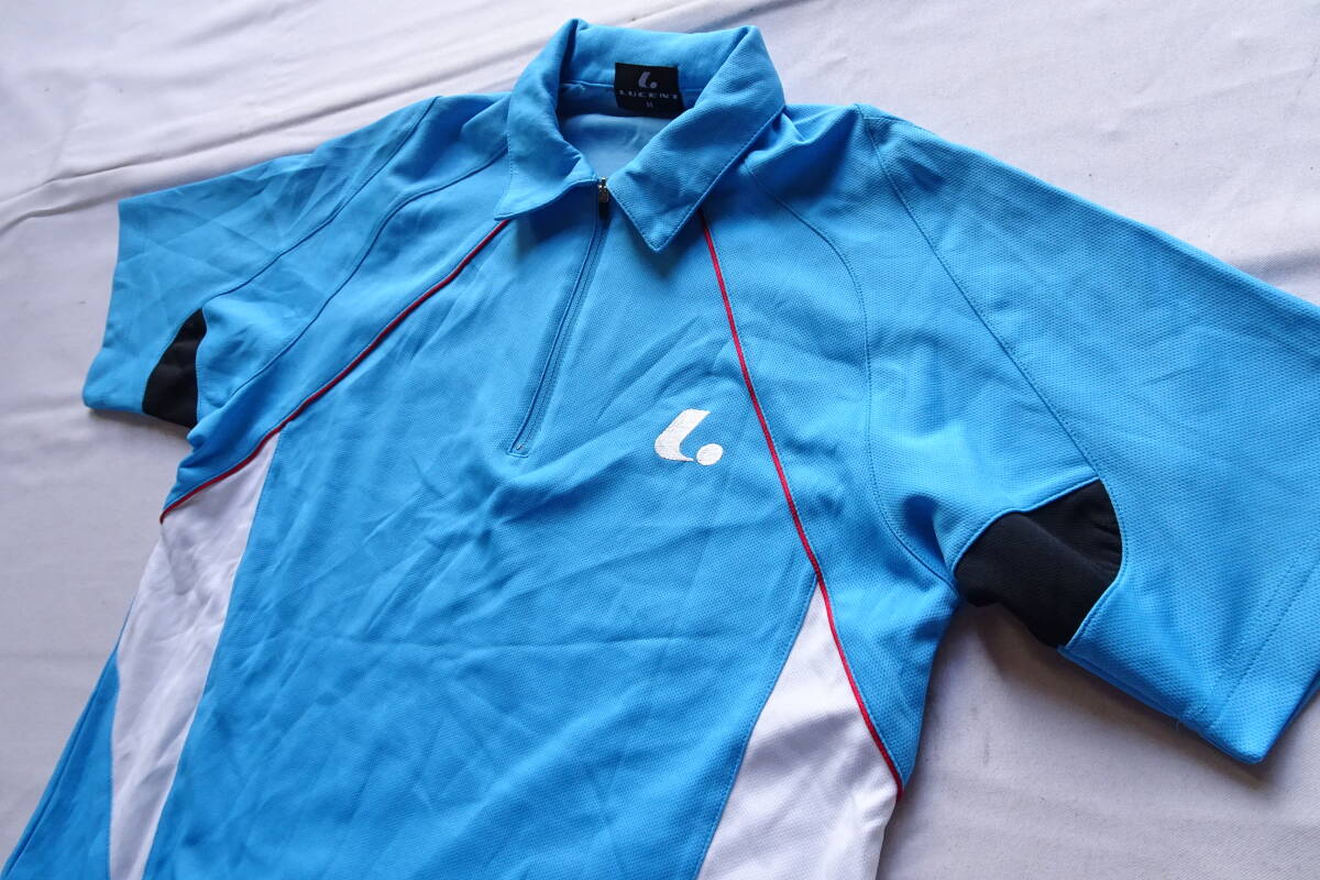 LUCENT/ルーセント/半袖ポロシャツ/ユニフォーム/テニス/UV LAYER/速乾性素材/ハーフジップ/赤パイピング/水色/Mサイズ(9/13R)