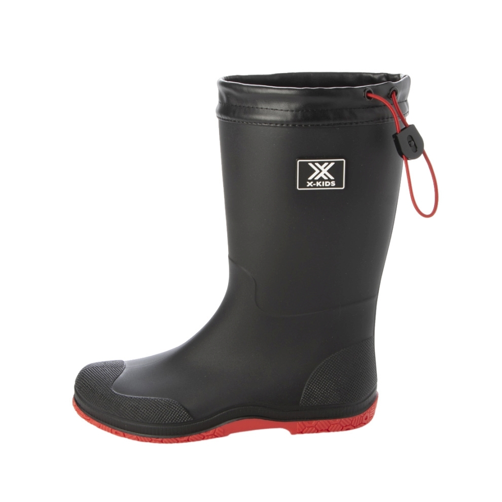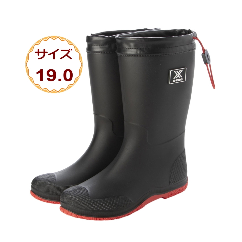 キッズ パッカブル レインブーツ 長靴 雨靴 折りたたみ フォールディング ドローコード 収納袋付き ブラック 黒 女の子 24065-blk-190