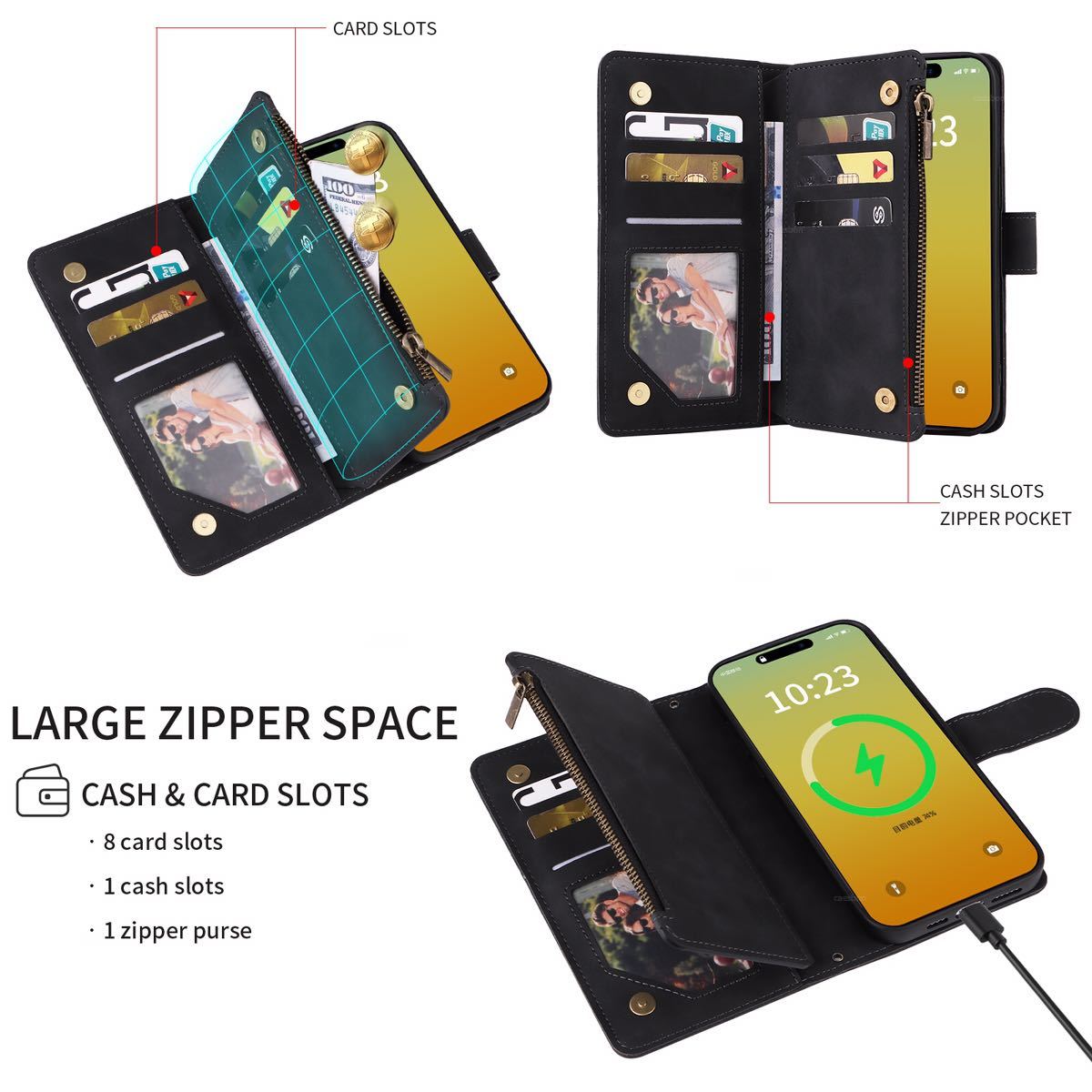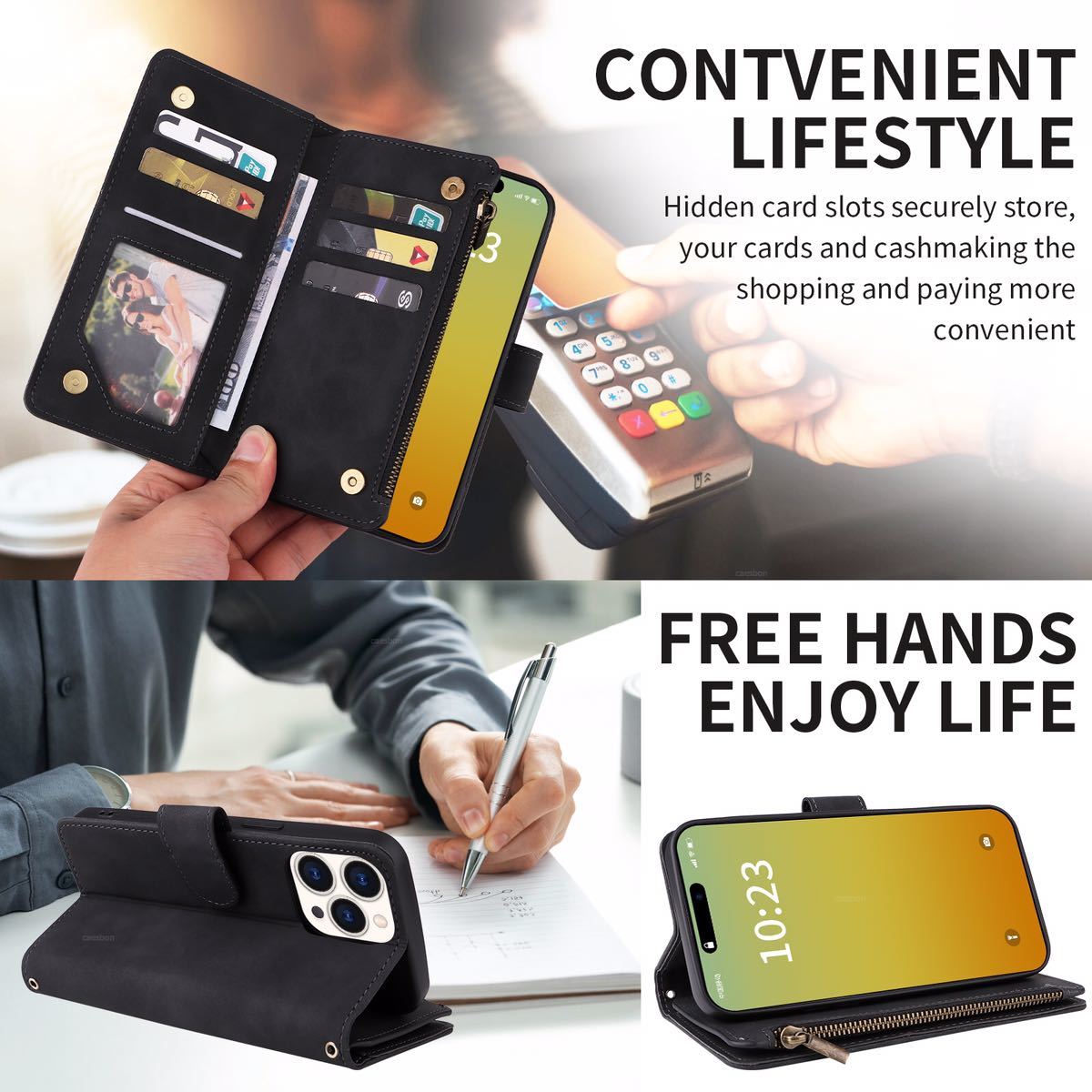 高品質のPUレザーで丁寧に作られた、おしゃれな 多機能 iPhone アイフォン ケース・カバーです。カジュアルに過ぎず、フォーマルに過ぎず、どんなシーンにもふさわしい iPhone手帳型ケース。 首掛け/斜め掛けストラップ機能&リストストラップ付き; 長いストラップは調整可能ですので、首から下げてスマホを落とす心配なし、紛失防止にも役に立ちます。斜めかけバックとしてはもちろん、お買い物からちょっとしたお出掛け、山登り、ハイキング、旅行まで、オールシーズン活躍してくます。リストストラップ付きで、携帯に便利です。取り付けることができます。 使い勝手抜群、6枚カードまで収納できるカードポケットが付く。日常によく使うカードをたっぷり収納できます。iPhoneケースと財布が一体になる、望ましいアイフォン手帳型ケース。 プレミアムファスナー付きの小物入れポケットは、コインケース / キーケース / 小銭いれとして活用できます。あとフリースペースに折りたたみ紙幣を入れますので、スリム 財布型 iPhoneケース を探している方にオススメ。 動画視聴に便利なスタンド機能。 端末をしっかりサポート。iPhone本体を嵌める背面ケースは柔らかいシリコン製となり、落下時の衝撃からiPhoneを守ります。※背面ケースはカバーから取り出すことができません。 | |||