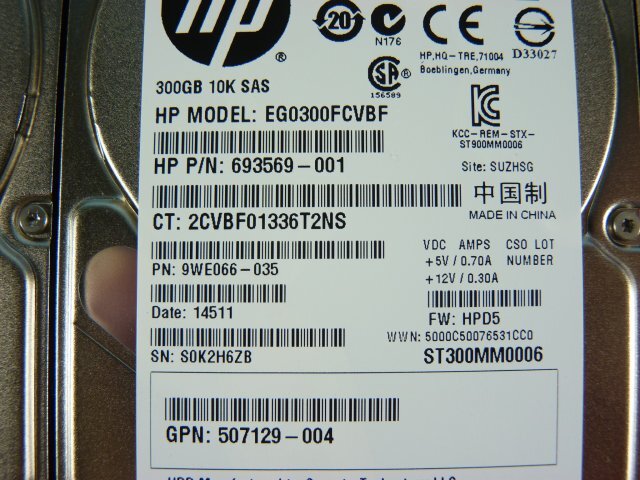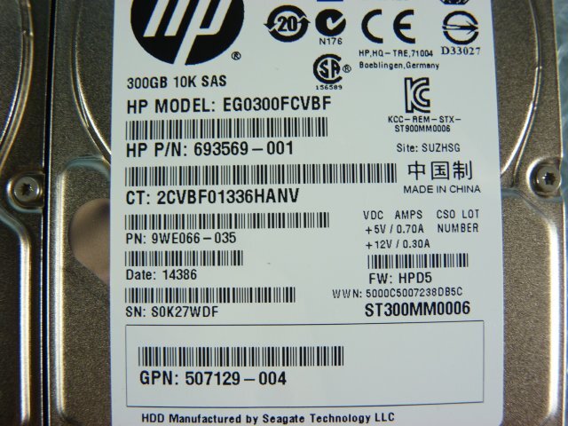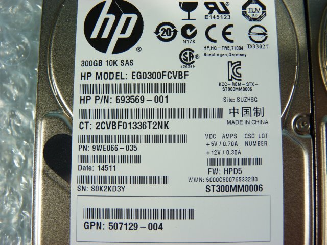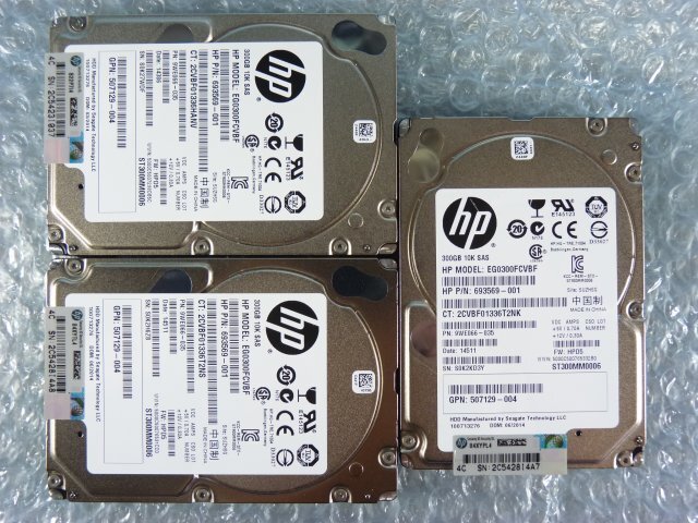 3個セット HP EG0300FCVBF 300GB 2.5インチ SAS 6Gb 10K(10000)rpm 15mm / ST300MM0006