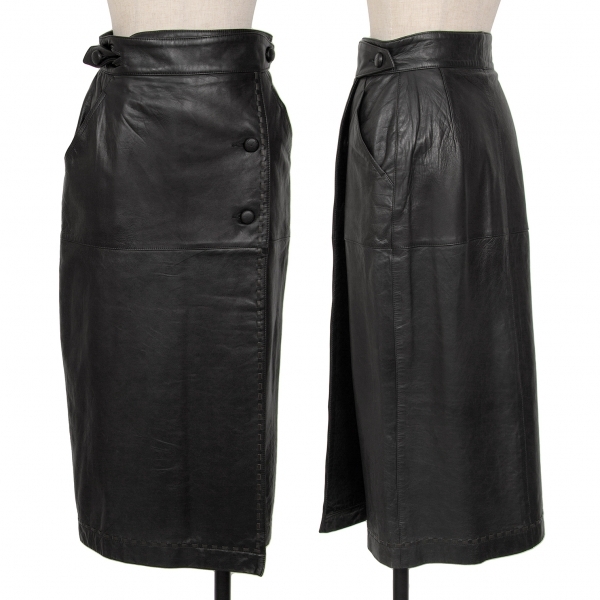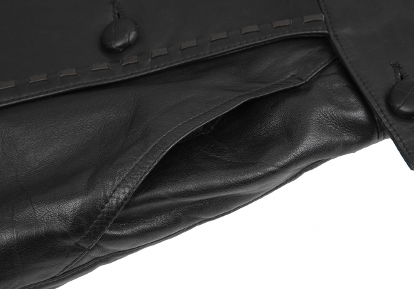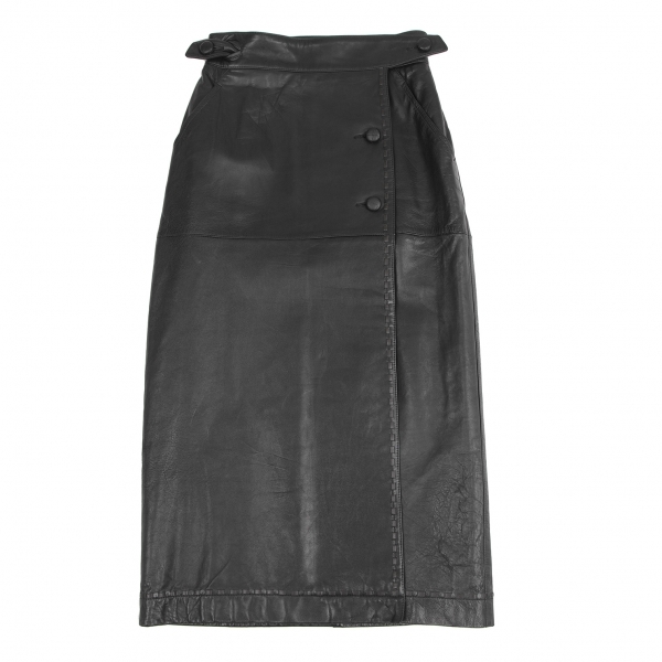 | イッセイミヤケISSEY MIYAKE ステッチレザースカート 黒9 |